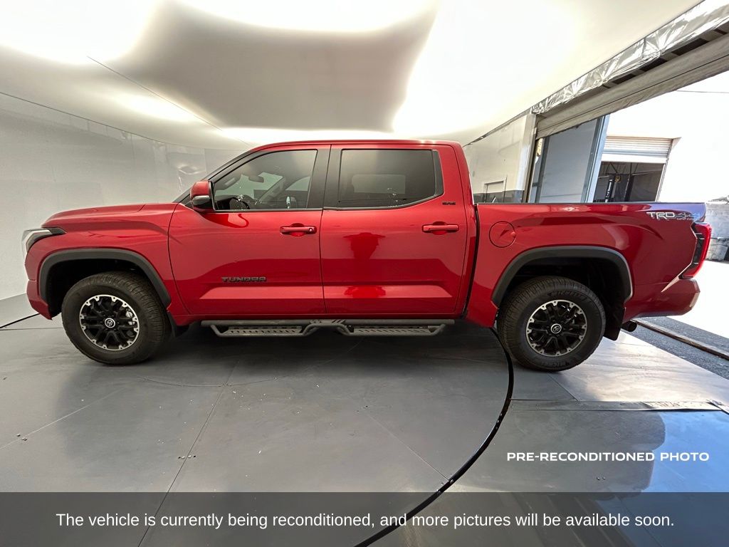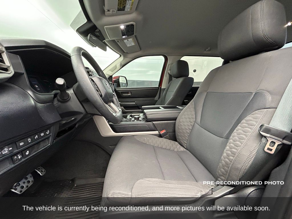 Commanding in presence and capability, this 2024 Toyota Tundra SR5 CrewMax 4x4 blends powerful performance with modern utility, showing just 18,920 miles and finished in striking Supersonic Red with a clean Black fabric interior. Under the hood, the 3.4 liter twin turbo V6 engine delivers a robust 389 horsepower, paired with a refined 10 speed electronically controlled automatic transmission and part time four wheel drive for confident performance on pavement or trail. This Tundra is equipped with the popular SR5 Convenience Package and TRD Off Road Package, adding upgraded shocks, skid plates, off road tuned suspension, and 18 inch alloy wheels wrapped in all terrain tires for serious trail readiness. Comfort meets durability inside the spacious CrewMax cabin, featuring power adjustable front seats, a leather wrapped heated steering wheel, rear under seat storage, rear seat vents, dual zone automatic climate control, and all weather floor liners. Technology is seamlessly integrated with the Uconnect 8 inch touchscreen infotainment system that includes Bluetooth, smartphone compatibility, voice control, SiriusXM radio, integrated backup camera, and multiple USB charge ports to keep devices powered. The off road package further enhances safety and control with hill descent control, Multi Terrain Select, Crawl Control, and an electronically controlled transfer case with locking rear differential. Additional features include a spray in bedliner, power sliding rear window, black exterior accents, LED headlights and fog lamps, and a factory installed tow package with hitch and trailer sway control, giving you both rugged towing capacity and daily drivability. Backed by a clean one owner Carfax history with consistent service and no accidents reported, this personal use Tundra represents an outstanding value with low miles and proven reliability. Built with Toyota's reputation for durability and engineered for the real world, this 2024 Tundra SR5 is ready to handle your toughest jobs or next weekend escape with confidence. Come see why this full size pickup continues to set the benchmark for strength, technology, and everyday practicality.