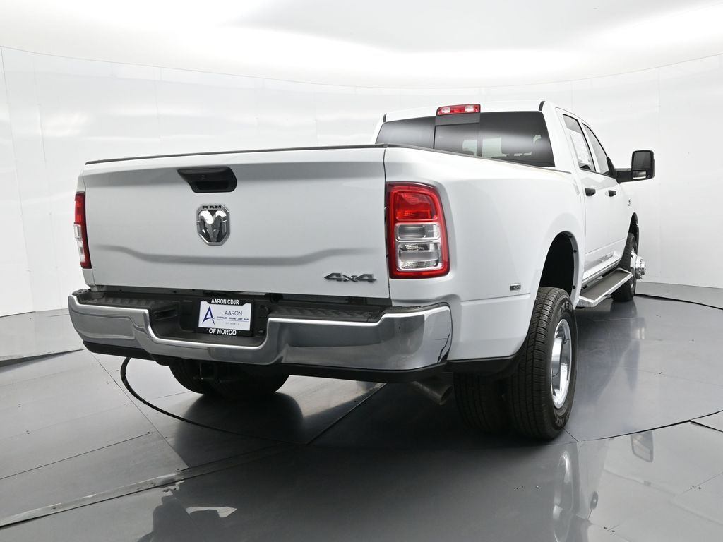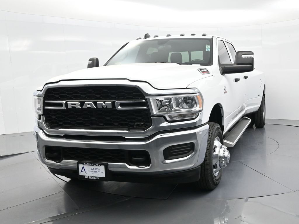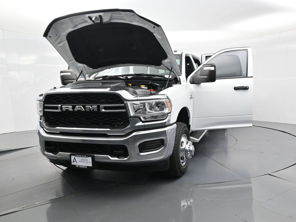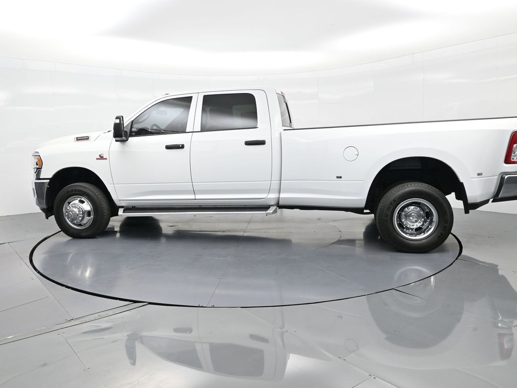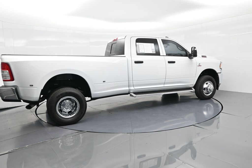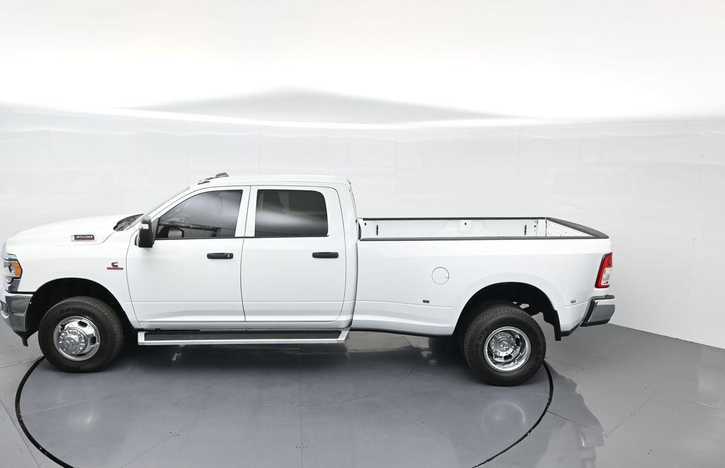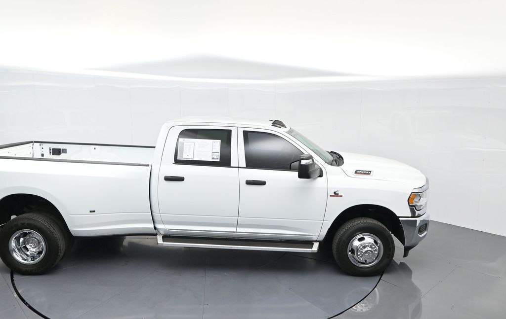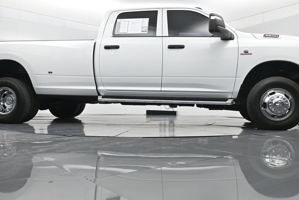 This 2024 Ram 3500 Tradesman Crew Cab 4x4 in Bright White Clearcoat is built to tackle the toughest jobs with uncompromising power, durability, and utility. Equipped with the legendary 6.7L Cummins Turbo Diesel I6 engine paired with the AISIN heavy-duty 6-speed automatic transmission, this truck delivers exceptional torque and towing capacity, making it ideal for hauling heavy loads, trailers, or equipment. The 4x4 drivetrain with an electronic shift-on-the-fly transfer case, anti-spin rear differential, and LT235/80R17 all-season tires ensures confident traction across various terrains. The truck is configured with the Chrome Appearance Group, adding chrome bumpers and grille for a polished, professional look, while the Tradesman Level 2 Equipment Group enhances functionality with features like an 8.4-inch Uconnect infotainment system, Apple CarPlay, Android Auto, SiriusXM, premium cloth seating, carpeted floors, remote keyless entry, and power windows and locks. Practical work-ready features include a spray-in bedliner, LED bed lighting, Class V receiver hitch, trailer brake controller, tow hooks, clearance lamps, power-folding trailer tow mirrors with heating, and a rear backup camera. Inside, the cabin offers a comfortable, well-equipped workspace with air conditioning, a 40/20/40 split-bench front seat, ample storage, and multiple USB and 12V power outlets. Safety is backed by multistage airbags, stability control, hill start assist, and tire pressure monitoring. With only 3,766 miles and a clean 1-owner CARFAX history, this Ram 3500 is virtually new and still under factory warranty. Designed to meet the needs of serious professionals, it combines legendary Cummins diesel performance with a comfortable, functional interiorperfect for commercial use, agriculture, construction, or heavy-duty recreational towing. If you need a dependable workhorse with the muscle to handle extreme demands, this Ram 3500 Tradesman is ready to deliver. Come see it today and experience capability without compromise.