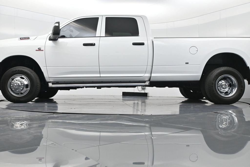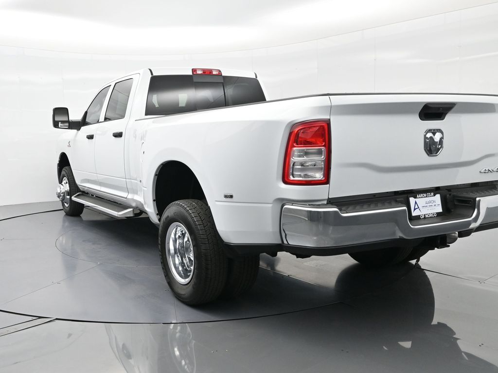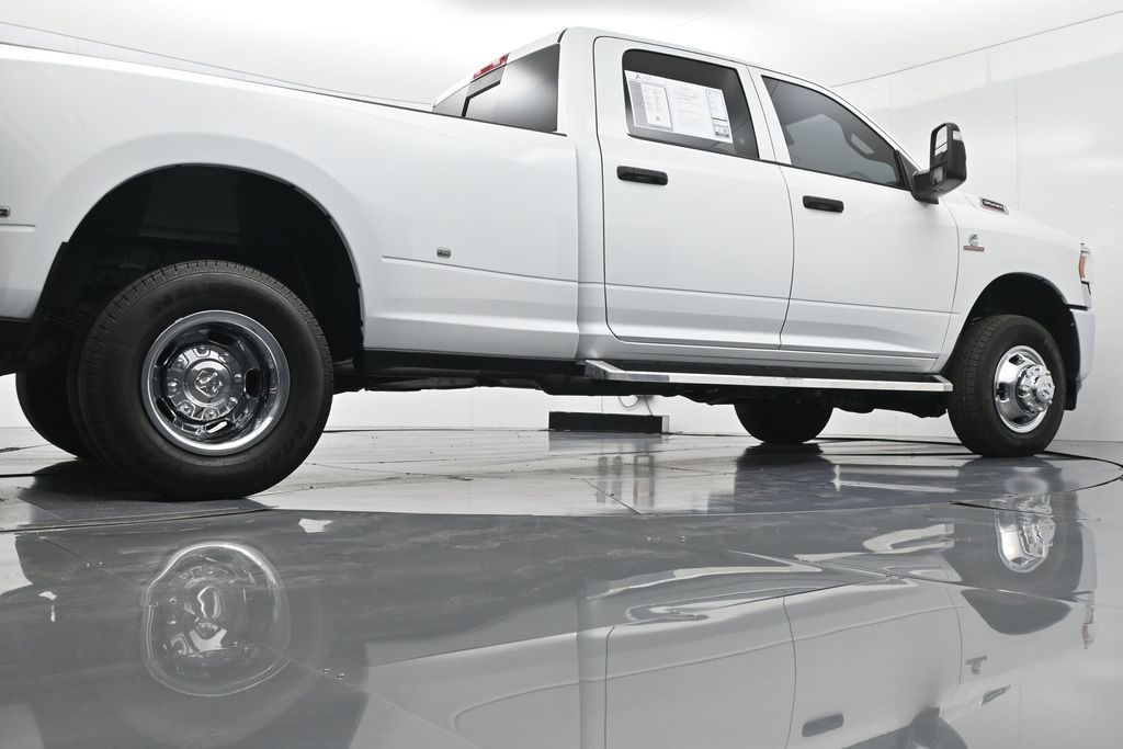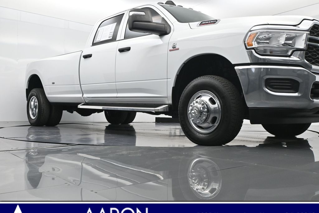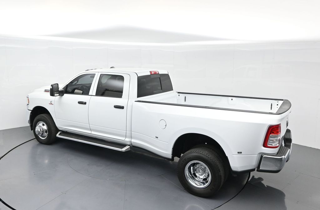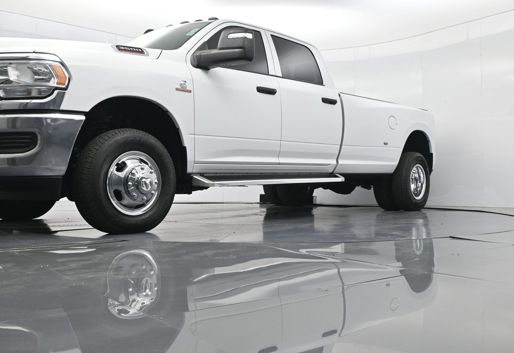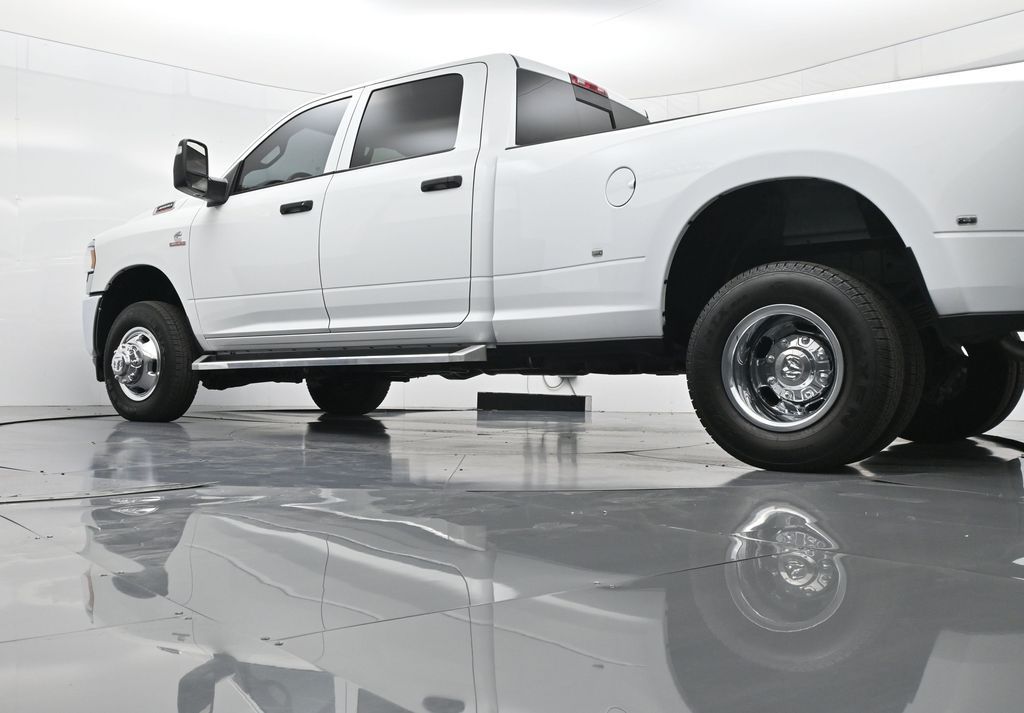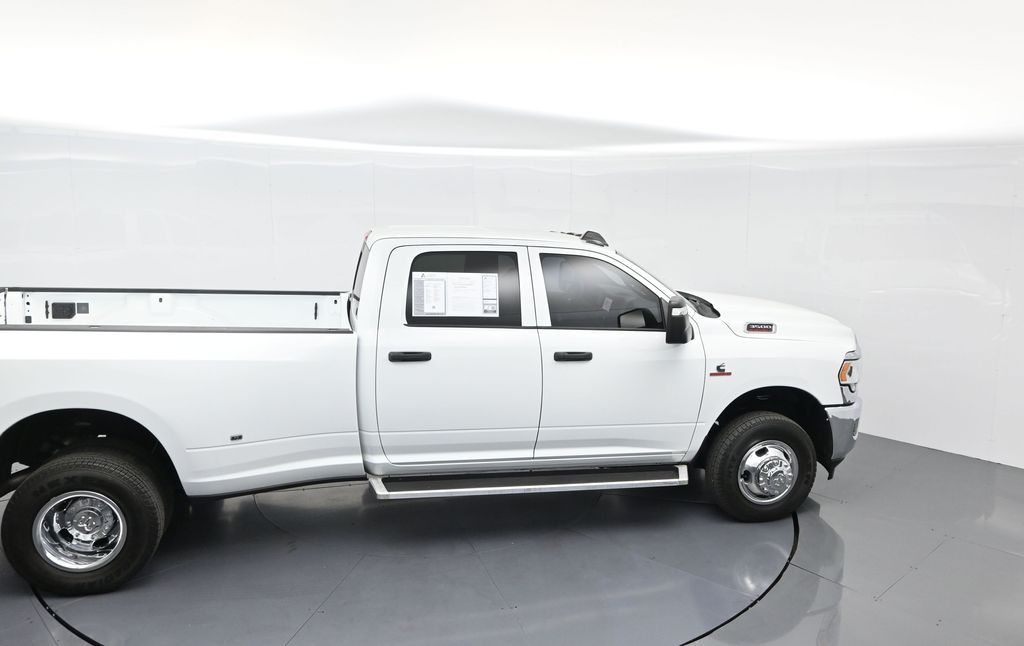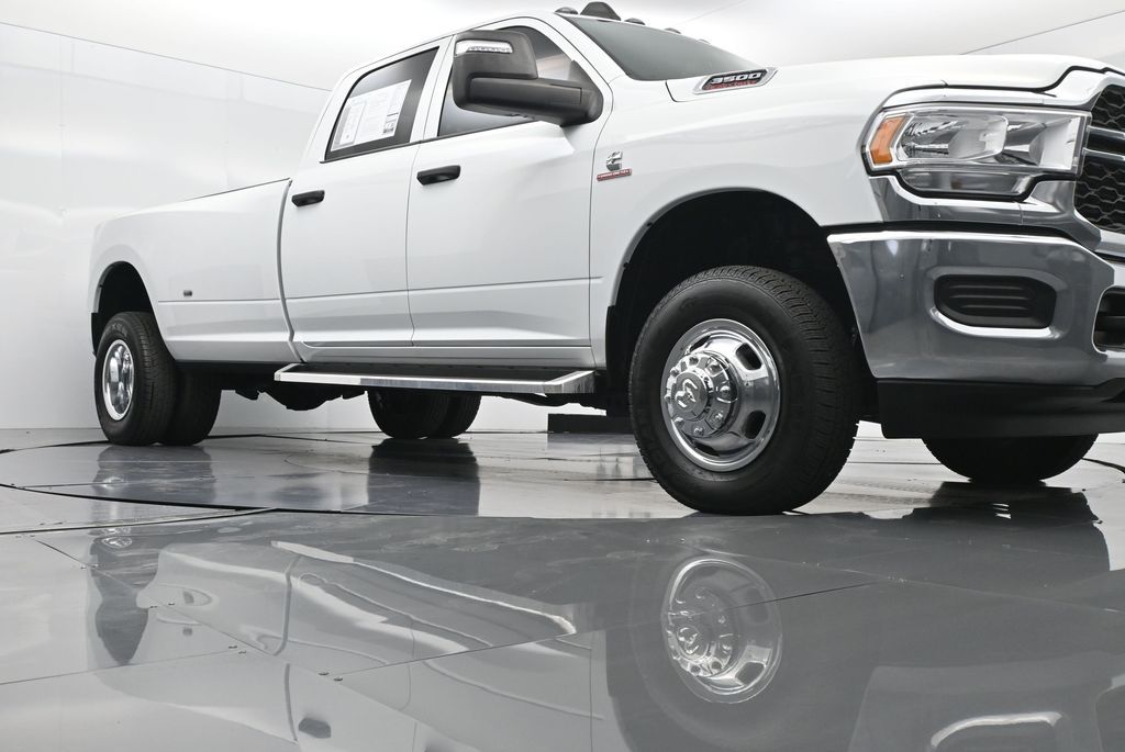 This 2024 Ram 3500 Tradesman Crew Cab 4x4 in Bright White Clearcoat is built to tackle the toughest jobs with uncompromising power, durability, and utility. Equipped with the legendary 6.7L Cummins Turbo Diesel I6 engine paired with the AISIN heavy-duty 6-speed automatic transmission, this truck delivers exceptional torque and towing capacity, making it ideal for hauling heavy loads, trailers, or equipment. The 4x4 drivetrain with an electronic shift-on-the-fly transfer case, anti-spin rear differential, and LT235/80R17 all-season tires ensures confident traction across various terrains. The truck is configured with the Chrome Appearance Group, adding chrome bumpers and grille for a polished, professional look, while the Tradesman Level 2 Equipment Group enhances functionality with features like an 8.4-inch Uconnect infotainment system, Apple CarPlay, Android Auto, SiriusXM, premium cloth seating, carpeted floors, remote keyless entry, and power windows and locks. Practical work-ready features include a spray-in bedliner, LED bed lighting, Class V receiver hitch, trailer brake controller, tow hooks, clearance lamps, power-folding trailer tow mirrors with heating, and a rear backup camera. Inside, the cabin offers a comfortable, well-equipped workspace with air conditioning, a 40/20/40 split-bench front seat, ample storage, and multiple USB and 12V power outlets. Safety is backed by multistage airbags, stability control, hill start assist, and tire pressure monitoring. With only 3,766 miles and a clean 1-owner CARFAX history, this Ram 3500 is virtually new and still under factory warranty. Designed to meet the needs of serious professionals, it combines legendary Cummins diesel performance with a comfortable, functional interiorperfect for commercial use, agriculture, construction, or heavy-duty recreational towing. If you need a dependable workhorse with the muscle to handle extreme demands, this Ram 3500 Tradesman is ready to deliver. Come see it today and experience capability without compromise.