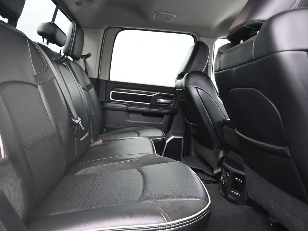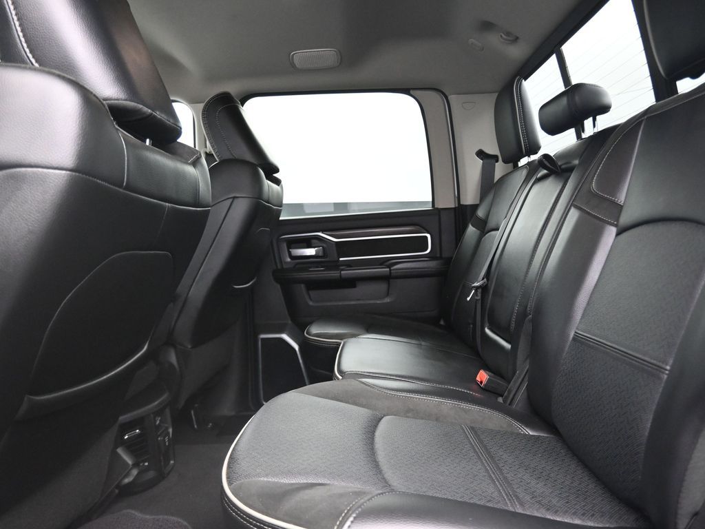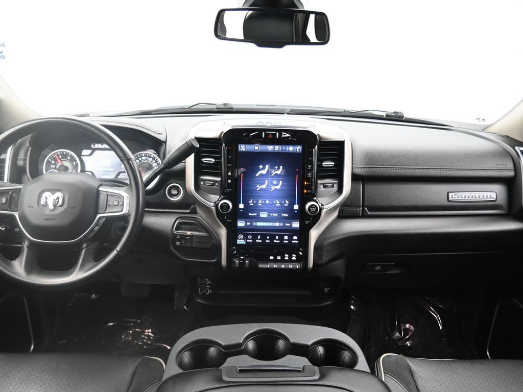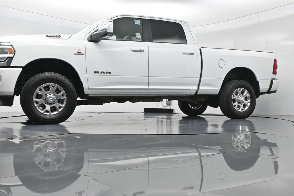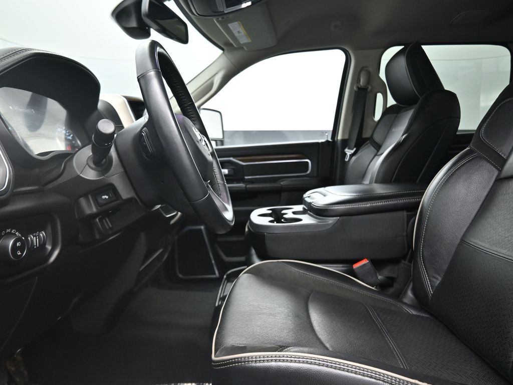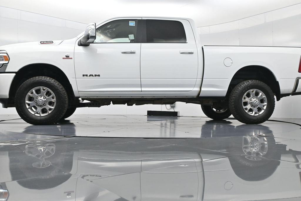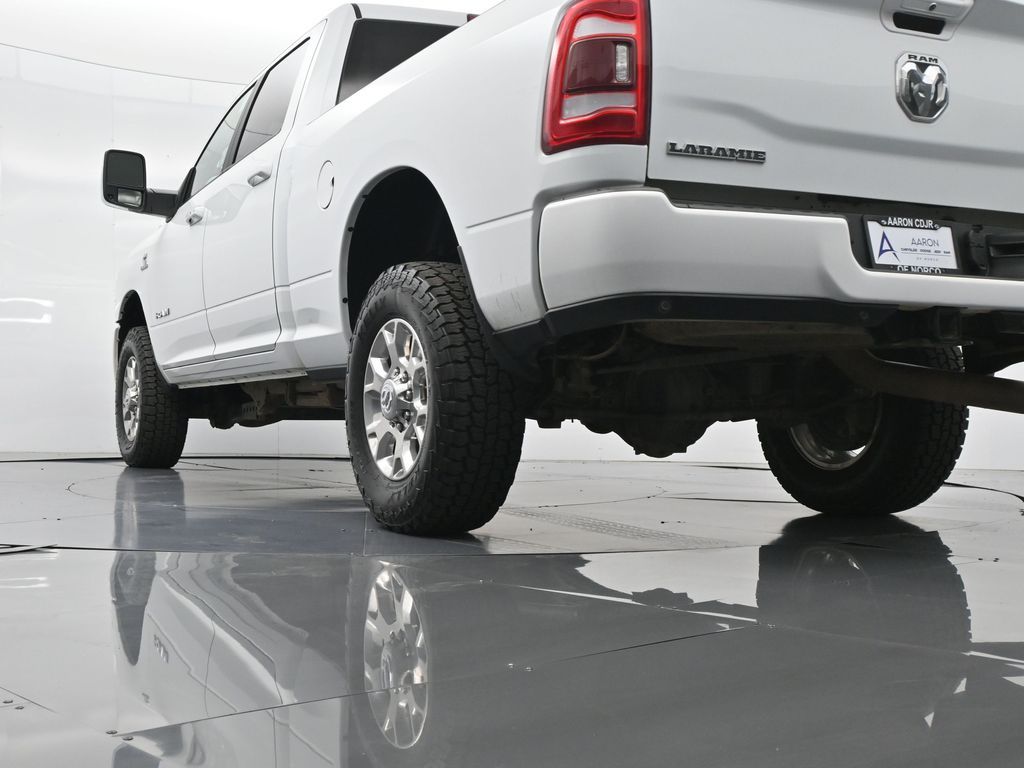 This 2024 Ram 2500 Laramie Crew Cab 4x4 in Bright White Clearcoat is a heavy-duty pickup that blends uncompromising capability with refined comfort and advanced technology. Under the hood, the legendary 6.7L Cummins Turbo Diesel I6 engine paired with a 6-speed automatic transmission delivers immense torque for towing and hauling, supported by a Class V receiver hitch, integrated trailer brake controller, and trailer reverse guidance for confident handling of large loads. The 4x4 drivetrain, anti-spin rear differential, and HD suspension with front and rear stabilizer bars ensure traction and stability in all conditions. The Laramie trim exudes style and functionality with chrome bumpers and grille, LED lighting, tow hooks, power-folding trailer tow mirrors with memory, and 18-inch polished aluminum wheels wrapped in LT275/70R18 all-terrain tires. Inside, the cabin offers heated and ventilated leather-trimmed front seats, heated rear seats, a heated leather-wrapped steering wheel, dual-zone automatic climate control, power-adjustable pedals with memory, and a power driver seat with lumbar support. The Uconnect 12-inch touchscreen infotainment system includes Apple CarPlay, Android Auto, Bluetooth, navigation, and premium Alpine audio. Convenience is enhanced with remote start, keyless enter n go, multiple USB and 115V outlets, and abundant storage options, including rear under-seat compartments. Safety features include ParkSense front and rear park assist, blind spot monitoring with cross-path detection, and a rear backup camera. With 43,572 miles and a clean 1-owner CARFAX history, this Laramie is well-maintained and still within factory coverage. Perfect for both work and leisure, this Ram 2500 offers the strength and dependability to handle demanding jobs while surrounding you with comfort and premium features. Experience the unmatched blend of capability and luxury today!