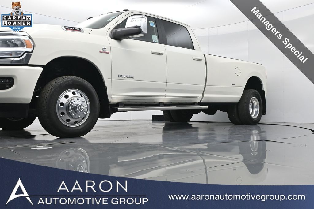 Power, durability, and upscale refinement define this 2024 Ram 3500 Laramie Crew Cab 4x4 Long Box, a heavy-duty diesel pickup thats purpose-built for serious towing, long hauls, and jobsite dominance. With only 15,437 miles, a clean 1-owner Carfax report, no accidents, and consistent regular maintenance, this truck delivers confidence and capability for business or recreation. Under the hood is the renowned 6.7L Cummins Turbo Diesel I6 engine paired with a 6-speed automatic transmission, producing exceptional torque for effortless trailering and rated for maximum long-term reliability. Outfitted with a dual rear wheel setup, 5th wheel/gooseneck prep package, anti-spin differential, and trailer reverse guidance system, this Ram is prepped to handle your toughest tasks with ease. Finished in Bright White Clear-Coat over a luxurious Black leather interior, the Laramie trim adds premium touches like ventilated and heated front bucket seats, heated rear seats, leather-wrapped steering wheel, 8.4-inch Uconnect touchscreen, SiriusXM, Apple CarPlay and Android Auto, remote start, LED bed lighting, and power sliding rear window. Practical additions include front and rear rubber floor mats, auxiliary switches, clearance lamps, and Bright Flat Cab Lights, while safety features like ParkView backup camera, Cross-Path Detection, Trailer Brake Control, Hill Start Assist, and Advanced Multistage Front Airbags help you operate with total control. With a 5-year/100,000-mile powertrain warranty, this low-mileage Ram 3500 Laramie offers unmatched value in the heavy-duty diesel segment. Whether you're hauling equipment across state lines or building something big right at home, this truck gives you the strength to go the distance and the refinement to do it in comfort. It's not just built to work hard, it's built to be trusted every day.