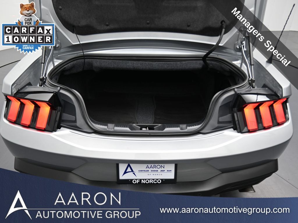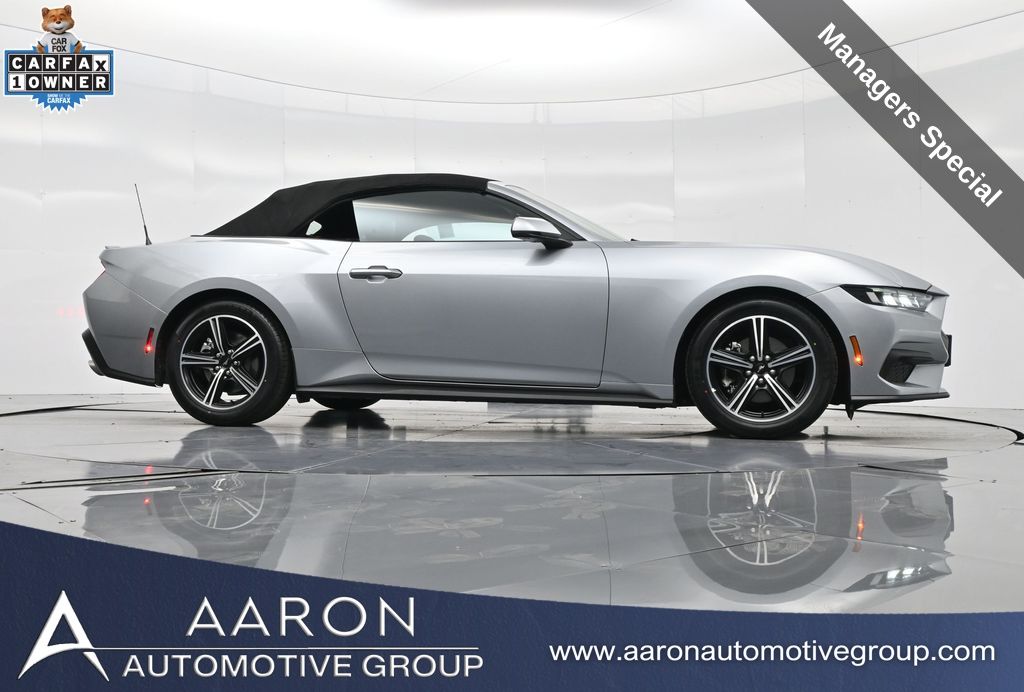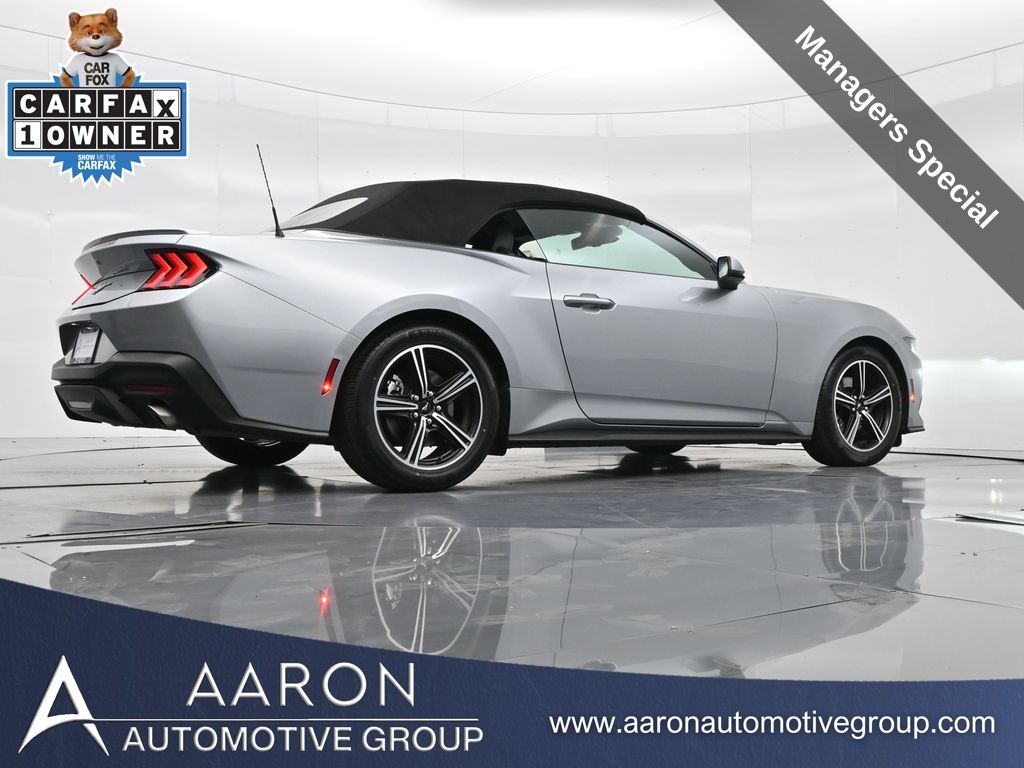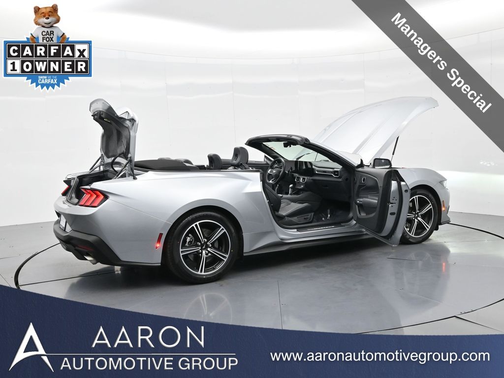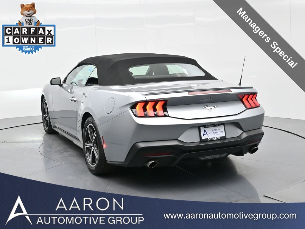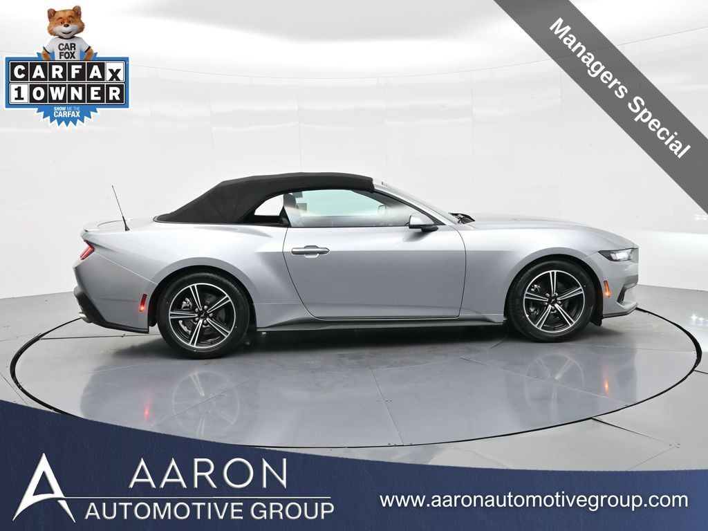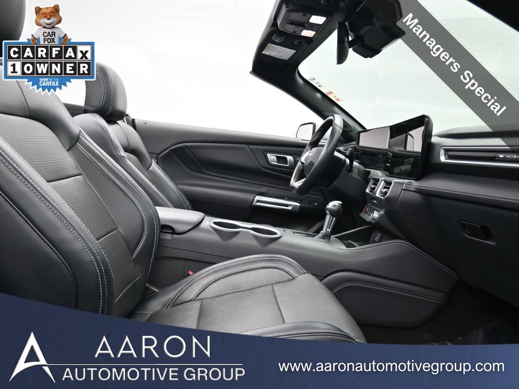 Experience the thrill of open-air driving in this 2024 Ford Mustang EcoBoost Premium Convertible, a modern American icon that blends bold styling with refined comfort and technology. Powered by a 2.3L EcoBoost I4 engine delivering 315 horsepower and paired to a smooth 10-speed automatic transmission, this Mustang offers responsive power with an impressive 26 MPG combined. Finished in Iconic Silver Metallic with a Black Onyx leather-trimmed interior, it features the Premium Package with a power soft top, 19-inch alloy wheels, and a 12.4-inch digital cluster. Inside, youll find heated and cooled front seats, ambient lighting, dual-zone automatic climate control, and Fords SYNC 4 infotainment system with a 13.2-inch touchscreen, Apple CarPlay, Android Auto, and integrated navigation. Premium touches continue with a 12-speaker B&O sound system and smart-charging USB ports. Safety is front and center with Ford Co-Pilot360, offering Pre-Collision Assist with Automatic Emergency Braking, Lane-Keeping System, Blind Spot Information System (BLIS), Rear View Camera, and Reverse Sensing System. Additional features include push-button start, Intelligent Access with remote start, Active Noise Control, and a Track Apps suite. This 1-owner, accident-free Mustang has just 28,327 miles and comes with a clean CARFAX history. Whether you're carving through canyon roads or cruising down the coast, this convertible delivers a dynamic driving experience with everyday comfort and standout tech. Don't miss your chance to take home a piece of performance heritage thats ready for every kind of drive. Sunny days are calling.