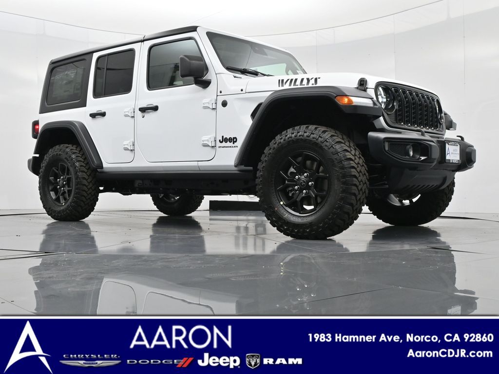 2025 Jeep Wrangler Willys Bright White ClearcoatFactory MSRP: $55,230 Dealer Discount of $7,000 off MSRP2-Door Passive Entry, Front Door Locks, 4-Wheel Drive Swing Gate Decal, 4.10 Rear Axle Ratio, 7 & 4 Pin Wiring Harness, 97 MPH Vehicle Max Speed Calibration, Advanced Brake Assist, Air Conditioning w/Auto Temperature Control, Air Filtering, Automatic Headlamps, Auxiliary Switches, Black Grille, Class II Receiver Hitch, Cluster 7.0" TFT Color Display, Convenience Group, Conventional Differential Front Axle, Corning Gorilla Glass, Dana M210 Wide HD Tube Front Axle, Dana M220 Wide Rear Axle, Daytime Running Lamps LED Accents, Deep Tint Sunscreen Windows, E-Locker Rear Axle, Emergency/Assistance Call, Enhanced Adaptive Cruise Control, Front LED Fog Lamps, Full Speed Forward Collision Warning Plus, Heated Front Seats, Heated Steering Wheel, Injection Molded Black Rear Bumper, LED Premium Reflector Headlamps, Mold In Color Bumper w/Gloss Black, Molded in Color Rubicon Highline Flare, MOPAR All-Weather Floor Mats, Off-Road Plus Mode, Power Heated Mirrors, Premium Wrapped Steering Wheel, Quick Order Package 24W Willys, Remote Start System, Security Alarm, Sun Visors w/Illuminated Vanity Mirrors, Universal Garage Door Opener, Wheels: 17" x 7.5" Painted Black, Willy's Suspension, Willys Hood Decal. 4WD 8-Speed Automatic 3.6L V6 24V VVT Price includes: $2500 - 2025 National Retail Bonus Cash . Exp. 09/02/2025