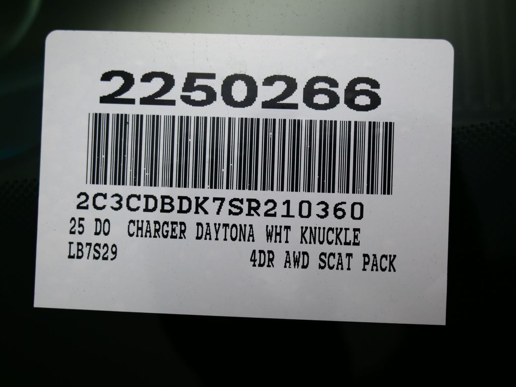 2025 Dodge Charger R/T Scat Pack Bright White ClearcoatFactory MSRP: $82,175 Dealer Discount of $9,211 off MSRPPriced below KBB Fair Purchase Price!18 High Performance Alpine Speakers w/Subwoofer, Ambient Light Color Control, Automatic High-Beam Headlamp Control, Black Color Multi-Function Mirrors, Exterior Mirrors Logo Lamps, Exterior Mirrors w/Memory, Front Cubby Bin w/Light, Frunk, Full Glass Roof, Glove Box Lamp, Heated Exterior Mirrors, Heated Front Seats, Heated Second Row Seats, High Back Bucket Seats, Illuminated Door Pull Handles, Leather Performance Seats, LED Footwell Lighting, LED Map Pockets, Map-In-Cluster Display, Plus Group, Power 4-Way Driver Lumbar Adjust, Power 4-Way Passenger Lumbar Adjust, Power Adjust 12-Way Driver Seat, Power Adjust 12-Way Front Passenger Seat, Power Adjust Mirrors, Power Hatch, Power Tilt/Telescope Steering Column, Power Windows Global Down w/Key Fob, Premium Door Trim Panel, Premium Instrument Panel, Premium Interior Accents, Premium LED Low-High Reflective Headlamps, Quick Order Package 25S Scat Pack, Radio, Driver Seat, Mirrors & Steering Column Memory, Rain Sensitive Windshield Wipers, Sun & Sound Package, Surround View Camera System, Two Tone Paint Group, Ventilated Front Seats, Windshield Wiper De-Icer, Wireless Charging Pad. 82/73 City/Highway MPG AWD 1-Speed Automatic Electric Motor82/73 City/Highway MPG Price includes: $7750 - 2025 National Retail Consumer Cash. Exp. 09/02/2025