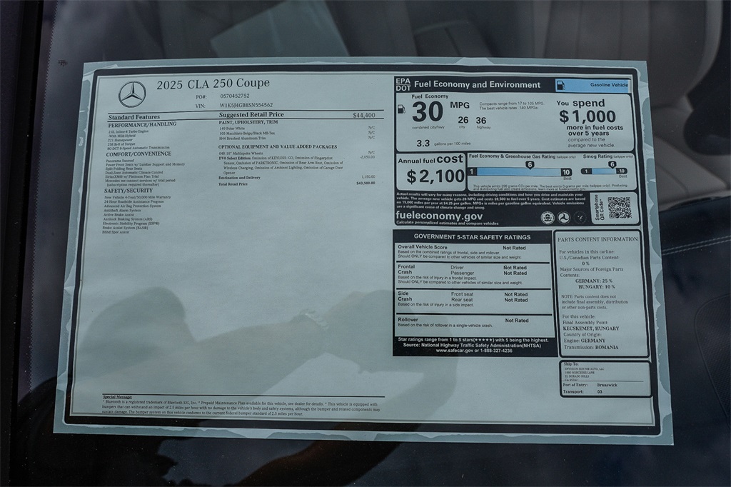 Polar White 2025 Mercedes-Benz CLA CLA 250 FWD 4D Sedan 8 Speed Dual Clutch 2.0L I4 Turbocharged26/36 City/Highway MPGMercedes-Benz of Sacramento is making dreams come true one customer at a time! We want to earn your business. Come and be a part of itBurmester® is a registered trademark of Burmester Audiosysteme GmbH, Berlin, Germany. Harman/kardon® and Logic 7 are registered marks of "Harman International Industries, Incorporated." Bluetooth is a registered mark of Bluetooth SIG, Inc.