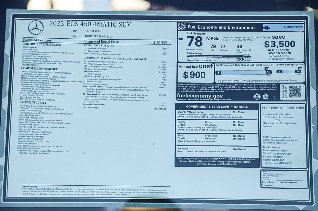 Grey 2023 Mercedes-Benz EQS 450 4MATIC® 4MATIC® 4D Sport Utility 1-Speed Automatic Electric Motor79/77 City/Highway MPGMercedes-Benz of Sacramento is making dreams come true one customer at a time! We want to earn your business. Come and be a part of itBurmester® is a registered trademark of Burmester Audiosysteme GmbH, Berlin, Germany. Harman/kardon® and Logic 7 are registered marks of "Harman International Industries, Incorporated." Bluetooth is a registered mark of Bluetooth SIG, Inc.