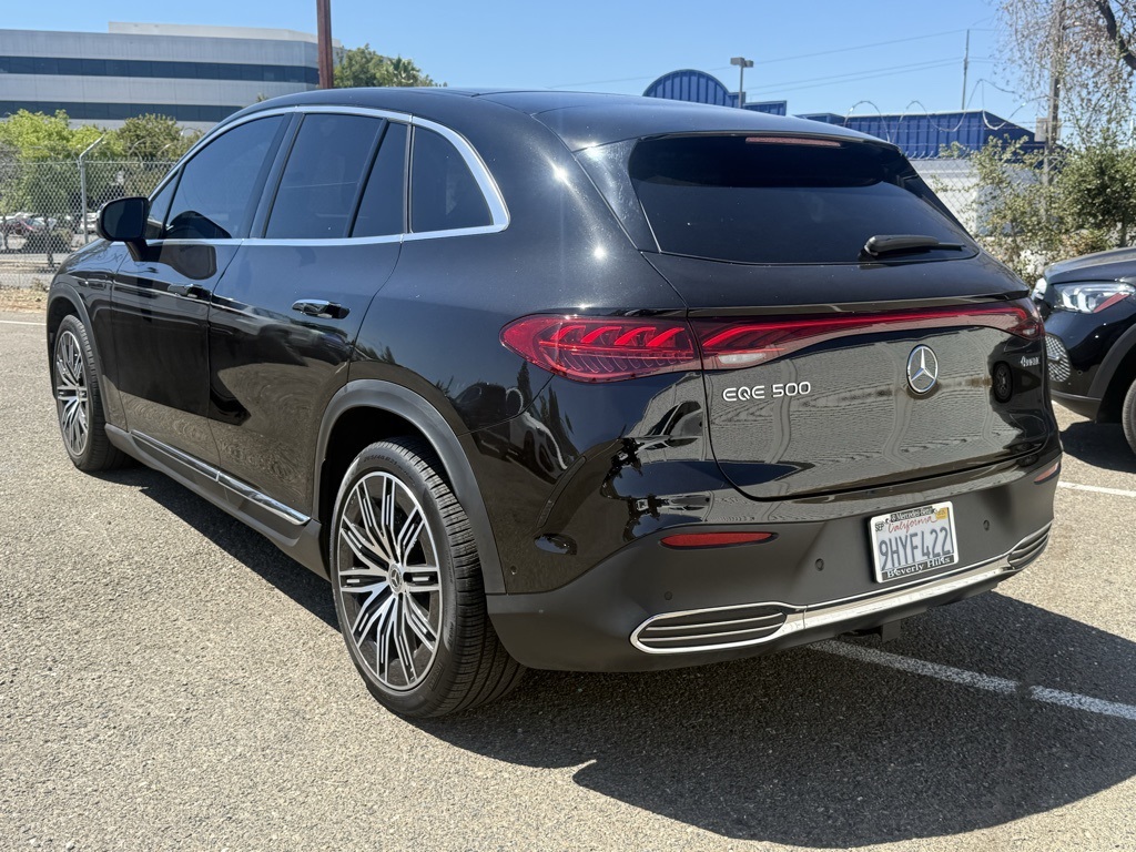 Recent Arrival! Certified. 91/86 City/Highway MPG Odometer is 4203 miles below market average!**CERTIFIED PRE-OWNED VEHICLE**, **1 PREVIOUS OWNER**, **WELL MAINTAINED VEHICLE**, **AMG LINE: AMG BODYSTYLING, WHEELS, SPORT SEATS, AND STEERING WHEEL**, **PREMIUM PKG: 10.25" TOUCHSCREEN DISPLAY + KEYLESS GO**, **DRIVER ASST PKG: BLIND SPOT MONITORS, LANE KEEP ASSIST, EMERGENCY BRAKING ASSIST**, **CONVENIENCE PKG: KEYLESS GO**, **PARKING ASST PKG: 360 SURROUND VIEW CAMERA, PARKTRONIC ACTIVE PARKING ASSIST**, **AMBIENT LIGHTING**, **APPLE CARPLAY/ANDROID AUTO**, **BACK-UP CAMERA**, **HEATED FRONT SEATS*, **BLIND SPOT MONITORS**, **PANORAMIC SUNROOF**, **POWER MOONROOF**, 100W USB-C Package, 15 Speakers, 4-Wheel Disc Brakes, ABS brakes, Active Ambient Lighting, Active Blind Spot Assist, Active Distance Assist DISTRONIC®, Active Speed Limit Assist, Active Steering Assist, Air Conditioning, AIR-BALANCE Package, Alloy wheels, Animation Projection Feature, Apple CarPlay®/Android Auto®, Auto High-beam Headlights, Auto tilt-away steering wheel, Auto-dimming door mirrors, Auto-dimming Rear-View mirror, Automatic temperature control, Axle Ratio: TBD, Brake assist, Bumpers: body-color, Burmester® Sound System, Class II Trailer Hitch, Comfort Front Headrests, Compass, Delay-off headlights, DIGITAL LIGHT LED Headlamp System, DIGITAL LIGHT Package, Driver Assistance Package, Driver door bin, Driver vanity mirror, Dual front impact airbags, Dual front side impact airbags, Electronic Stability Control, Emergency communication system: eCall Emergency System, ENERGIZING Air Control Plus w/HEPA Filtration, Energizing Comfort Package, Evasive Steering Assist, Extended Automatic Restart in Traffic, Exterior Parking Camera Rear, Four wheel independent suspension, Four-Zone Climate Control, Front anti-roll bar, Front Bucket Seats, Front Center Armrest, Front Door Mercedes Star-Pattern Logo Projectors, Front dual zone A/C, Front Multicontour Seating Package, Front reading lights, Garage door transmitter: HomeLink, Head restraints memory, Head-Up Display, Heated door mirrors, Heated front seats, Heated Power Front Seats w/Memory, HEPA Filter, HVAC memory, Illuminated entry, Knee airbag, Leather steering wheel, Low tire pressure warning, MBUX Augmented Reality for Navigation, MBUX EQ Navigation Services, MBUX Navigation, Memory seat, Multicontour Front Seats w/Massage Feature, Navigation System, Navigation system: Navigation with Electric Intelligence, Occupant sensing airbag, Outside temperature display, Overhead airbag, Overhead console, Panic alarm, Passenger door bin, Passenger vanity mirror, Pinnacle Trim Package, Power adjustable front head restraints, Power door mirrors, Power driver seat, Power Liftgate, Power moonroof: Panorama, Power passenger seat, Power steering, Power windows, PRE-SAFE® Impulse Side, Premium audio system: MBUX, Premium Trim Package, Projection Function, Radio data system, Radio: MBUX Multimedia System, Rain sensing wipers, Rapid Heating Front Seats, Rear anti-roll bar, Rear reading lights, Rear seat center armrest, Rear window defroster, Rear window wiper, Remote keyless entry, Route-Based Speed Adaptation w/End of Traffic Jam, Security system, SiriusXM Satellite Radio w/Trial Period, Speed control, Speed-sensing steering, Speed-Sensitive Wipers, Split folding rear seat, Spoiler, Steering wheel memory, Steering wheel mounted audio controls, Telescoping steering wheel, Tilt steering wheel, Traction control, Traffic Sign Assist, Trip computer, Turn signal indicator mirrors, Variably intermittent wipers, Ventilated Front Seats, Wheel Locking Bolts, Wheels: 21" x 9.5J AMG® Multi-Spoke, Wireless Smartphone Integration.Obsidian Black Metallic 2023 Mercedes-Benz EQE 500 SUV 4MATIC® Electric Motor 4MATIC® 4D Sport Utility 1-Speed AutomaticMercedes-Benz Certified Pre-Owned Details: * 165+ Point Inspection * Includes Trip Interruption Reimbursement and 7 days/500 miles Exchange Privilege * Vehicle History * Warrant