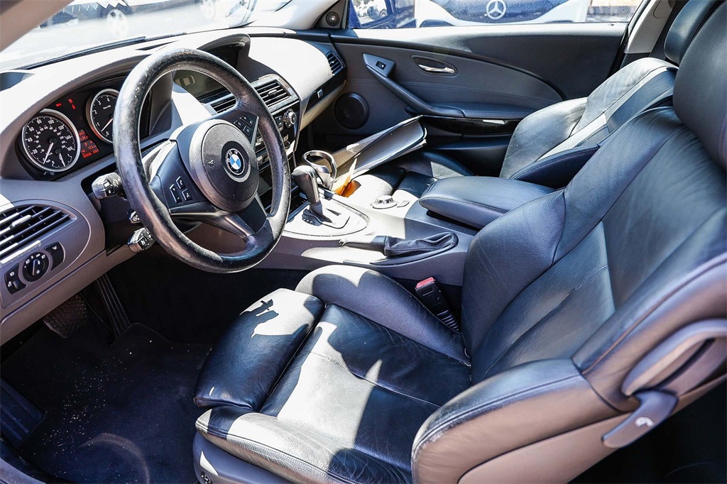 **CLEAN CARFAX: NO ACCIDENTS**, **WELL MAINTAINED VEHICLE**, 18" x 8" Radial Spoke Cast Alloy Wheels, 4-Wheel Disc Brakes, 8 Speakers, ABS brakes, Air Conditioning, Alloy wheels, AM/FM radio, AM/FM Stereo/CD Audio System, Auto tilt-away steering wheel, Auto-dimming door mirrors, Auto-dimming Rear-View mirror, Automatic temperature control, Brake assist, Bumpers: body-color, CD player, Dakota Leather Seat Trim, Delay-off headlights, Driver door bin, Driver vanity mirror, Dual front impact airbags, Dual front side impact airbags, Electronic Stability Control, Emergency communication system: BMW Assist, Four wheel independent suspension, Front anti-roll bar, Front Bucket Seats, Front Center Armrest, Front dual zone A/C, Front fog lights, Front reading lights, Fully automatic headlights, Garage door transmitter: HomeLink, Headlight cleaning, Heated door mirrors, High intensity discharge headlights: Bi-xenon, Illuminated entry, Knee airbag, Leather Shift Knob, Leather steering wheel, Low tire pressure warning, Memory seat, Navigation System, Occupant sensing airbag, Outside temperature display, Overhead airbag, Panic alarm, Passenger door bin, Passenger vanity mirror, Power door mirrors, Power driver seat, Power moonroof, Power passenger seat, Power steering, Power windows, Radio data system, Rain sensing wipers, Rear anti-roll bar, Rear window defroster, Remote keyless entry, Security system, Speed control, Speed-sensing steering, Sport steering wheel, Steering wheel memory, Steering wheel mounted A/C controls, Steering wheel mounted audio controls, Tachometer, Telescoping steering wheel, Tilt steering wheel, Traction control, Trip computer, Variably intermittent wipers, Weather band radio.Jet Black 2005 BMW 6 Series 645Ci 4.4L V8 SMPI DOHC 32V RWD 2D Coupe 6-SpeedMercedes-Benz of Sacramento is making dreams come true one customer at a time! We want to earn your business. Come and be a part of itBurmester® is a registered trademark of Burmester Audiosysteme GmbH, Berlin, Germany. Harman/kardon® and Logic 7 are registered marks of "Harman International Industries, Incorporated." Bluetooth is a registered mark of Bluetooth SIG, Inc.