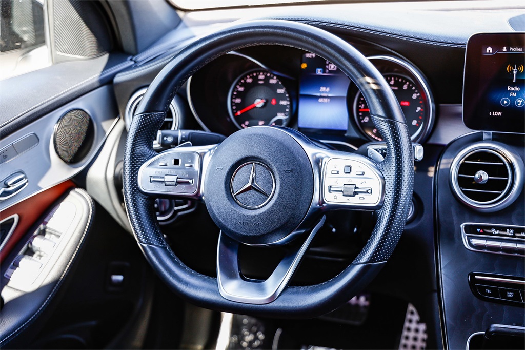 21/27 City/Highway MPG**1 PREVIOUS OWNER**, **WELL MAINTAINED VEHICLE**, **PREMIUM PKG: 10.25" TOUCHSCREEN DISPLAY + KEYLESS GO**, **NIGHT PACKAGE: BLACK EXTERIOR TRIM**, **CONVENIENCE PKG: KEYLESS GO**, **PARKING ASST PKG: 360 SURROUND VIEW CAMERA, PARKTRONIC ACTIVE PARKING ASSIST**, **AMBIENT LIGHTING**, **APPLE CARPLAY/ANDROID AUTO**, **BACK-UP CAMERA**, **HEATED FRONT SEATS*, **BLIND SPOT MONITORS**, **POWER MOONROOF**, 3.27 Axle Ratio, 4-Way Lumbar Support, 4-Wheel Disc Brakes, 6 Speakers, ABS brakes, Air Conditioning, Alloy wheels, AM/FM radio: SiriusXM, AMG® Line, AMG® Line Body Styling, AMG® Line Exterior, AMG® Line Floor Mats, AMG® Line Interior, Apple CarPlay®/Android Auto®, Auto High-beam Headlights, Auto tilt-away steering wheel, Auto-dimming door mirrors, Auto-dimming Rear-View mirror, Automatic temperature control, Body Color Rear Spoiler, Brake assist, Bumpers: body-color, Child-Seat-Sensing Airbag, Delay-off headlights, Driver door bin, Driver vanity mirror, Dual front impact airbags, Dual front side impact airbags, Electronic Stability Control, Emergency communication system: eCall Emergency System, Four wheel independent suspension, Front anti-roll bar, Front Bucket Seats, Front Center Armrest, Front dual zone A/C, Front reading lights, Fully automatic headlights, Garage door transmitter: HomeLink, Genuine wood dashboard insert, Head-Up Display, Heated door mirrors, Heated Front Bucket Seats, Heated front seats, High-Gloss Black Elements, Illuminated entry, Knee airbag, Leather steering wheel, LED Logo Projectors, Low tire pressure warning, MB-Tex Dashboard w/Topstitching, MB-Tex Upholstery, Memory seat, Night Package, Occupant sensing airbag, Outside temperature display, Overhead airbag, Overhead console, Panic alarm, Passenger door bin, Passenger vanity mirror, Perforated Brake Discs, Power door mirrors, Power driver seat, Power Front Seats w/Driver Memory, Power Liftgate, Power moonroof, Power passenger seat, Power steering, Power windows, Premium audio system: MBUX, Radio data system, Radio: AM/FM/HD, Rain sensing wipers, Rear anti-roll bar, Rear fog lights, Rear reading lights, Rear seat center armrest, Rear window defroster, Remote keyless entry, Security system, SiriusXM Satellite Radio, Speed control, Speed-sensing steering, Split folding rear seat, Steering wheel memory, Steering wheel mounted audio controls, Tachometer, Telescoping steering wheel, Tilt steering wheel, Traction control, Trip computer, Turn signal indicator mirrors, Variably intermittent wipers, Wheel Locking Bolts, Wheels: 8.5J x 20" AMG® Multispoke w/Black Accents.Polar White 2022 Mercedes-Benz GLC GLC 300 Coupe 4MATIC® I4 4MATIC® 4D Sport Utility 9-Speed AutomaticMercedes-Benz of Sacramento is making dreams come true one customer at a time! We want to earn your business. Come and be a part of itBurmester® is a registered trademark of Burmester Audiosysteme GmbH, Berlin, Germany. Harman/kardon® and Logic 7 are registered marks of "Harman International Industries, Incorporated." Bluetooth is a registered mark of Bluetooth SIG, Inc.