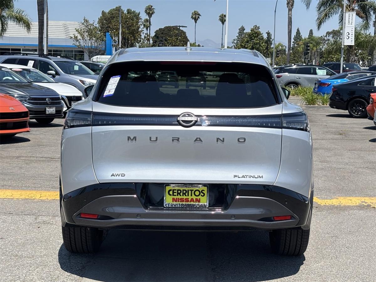 <p>Experience Refined Luxury and Cutting-Edge Technology with the New 2025 Nissan Murano Platinum in Brilliant Silver Metallic</p><p>Step into the future of driving with the 2025 Nissan Murano Platinum, a mid-size SUV designed for those who appreciate sophistication and innovation. This all-wheel-drive marvel is powered by a responsive I4 engine, perfectly paired with a smooth 9-speed automatic transmission, ensuring a dynamic yet fuel-efficient ride. The Brilliant Silver Metallic exterior exudes elegance, making a statement wherever you go.</p><p>Inside, the Murano Platinum offers a sanctuary of comfort and advanced technology. The Zero Gravity seats, inspired by NASA, provide unparalleled support and comfort for long journeys. The panoramic moonroof invites the sky into your cabin, enhancing every drive with natural light and breathtaking views. Stay connected with the intuitive NissanConnect system, featuring a high-resolution touchscreen display, Apple CarPlay, and Android Auto integration, keeping you in command of your digital world.</p><p>Safety is paramount in the Murano, equipped with Nissan&rsquor;s Safety Shield 360 suite, offering features like automatic emergency braking, blind-spot warning, and rear cross-traffic alert. Whether navigating city streets or exploring the open road, the 2025 Nissan Murano Platinum delivers a driving experience that is both exhilarating and secure. Discover a new level of luxury and innovation with this exceptional SUV.</p><p>Be sure to call or visit Cerritos Nissan to discover more. Your new favorite vehicle awaits - don't let someone else drive it home!</p>&zwnj;