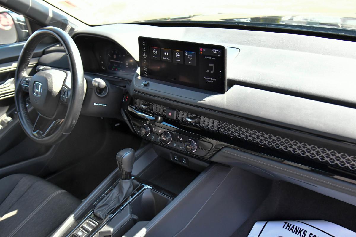 Scores 41 Highway MPG and 46 City MPG! This Honda Accord Hybrid delivers a Gas/Electric I-4 2.0 L/122 engine powering this Variable transmission. Wheels: 19 x 8.5J Berlina Black -inc: machined face, Vehicle Stability Assist (VSA) Electronic Stability Control (ESC), Valet Function.*This Honda Accord Hybrid Comes Equipped with These Options *Trunk Rear Cargo Access, Trip Computer, Transmission: Electronic Continuously Variable -inc: econ, normal, sport and individual modes, Traffic Jam Assist, Tires: 235/40R19 96V AS, Tire Specific Low Tire Pressure Warning, Tire mobility kit, Strut Front Suspension w/Coil Springs, Speed Sensitive Variable Intermittent Wipers, Smart Device Remote Engine Start.
