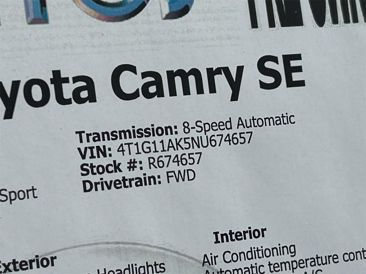 <p>Experience the Perfect Blend of Style and Performance with the 2022 Toyota Camry SE in Celestial Silver Metallic</p><p>Step into a world where sophistication meets performance with the 2022 Toyota Camry SE. Designed for those who appreciate the finer details, this mid-size sedan offers an exhilarating drive with its efficient 4-cylinder engine and smooth 8-speed automatic transmission. The Celestial Silver Metallic exterior not only turns heads but also complements the car&apos;s sleek, aerodynamic lines, making every journey a stylish affair. </p><p>Inside, the Camry SE is crafted for comfort and convenience. Its sport-tuned suspension provides a responsive and agile ride, perfect for navigating city streets or cruising down the highway. The driver-centric cockpit features a leather-trimmed steering wheel with paddle shifters, allowing for a more engaging driving experience. Advanced safety features like Toyota Safety Sense&trade; ensure peace of mind, with pre-collision systems and lane departure alerts keeping you secure on every trip.</p><p>For those who value connectivity, the Camry SE offers seamless integration with your digital life through Apple CarPlay&reg; and Android Auto&trade;, keeping you connected and entertained wherever the road takes you. Discover the joy of driving with a vehicle that combines reliability, style, and cutting-edge technology. The 2022 Toyota Camry SE is more than just a car&mdash;it&apos;s your next adventure waiting to happen.</p><p>Be sure to call or visit Cerritos Nissan to discover more. Your new favorite vehicle awaits - don't let someone else drive it home!</p>&zwnj;
