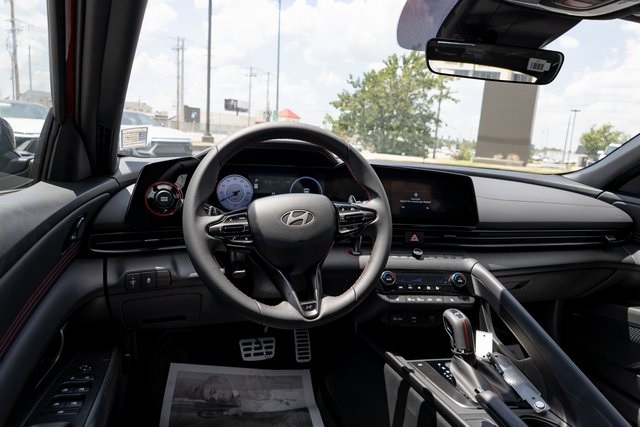 Ultimate Red 2025 Hyundai Elantra N Line 4D Sedan FWD 7-Speed Dual Clutch DCT I428/35 City/Highway MPGDisclaimer: For In-Transit Inventory, any date of arrival is estimated. The actual date of delivery may vary due to circumstances beyond Hyundai and the dealer’s control. Please contact your local Hyundai dealer for availability details. Not all consumers will qualify for all incentives and/or rebates. Some incentives and/or rebates require participation in clubs and or organizations and/or the financing with a specific lender and/or trade or ownership of a competitive or same make/model and/or possession of a certain credit score. Additionally, some incentives and/or rebates are validated based on residency of the ultimate end user and thus could change in comparison to the values listed on this, or any other, website. Does not include $295 admin fee. Please see dealer for details. Advertised price does excludes options added by the dealer and displayed on the vehicles window sticker addendum. Please contact dealer for additional details.**WE OFFER HOME DELIVERY AT NO ADDITIONAL CHARGE - PLEASE INQUIRE ABOUT THIS CONVENIENT OPTION** Price includes: $1250 - Hyundai HMF Dealer Choice : $1250 discount and 5.99% APR for 24 months. $44.32 per $1000 financed. Available to well qualified buyers who finance through Hyundai Motor Finance. H704. Exp. 09/02/2025