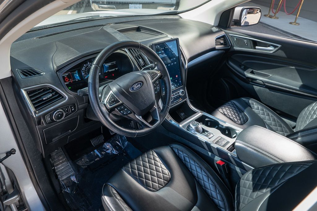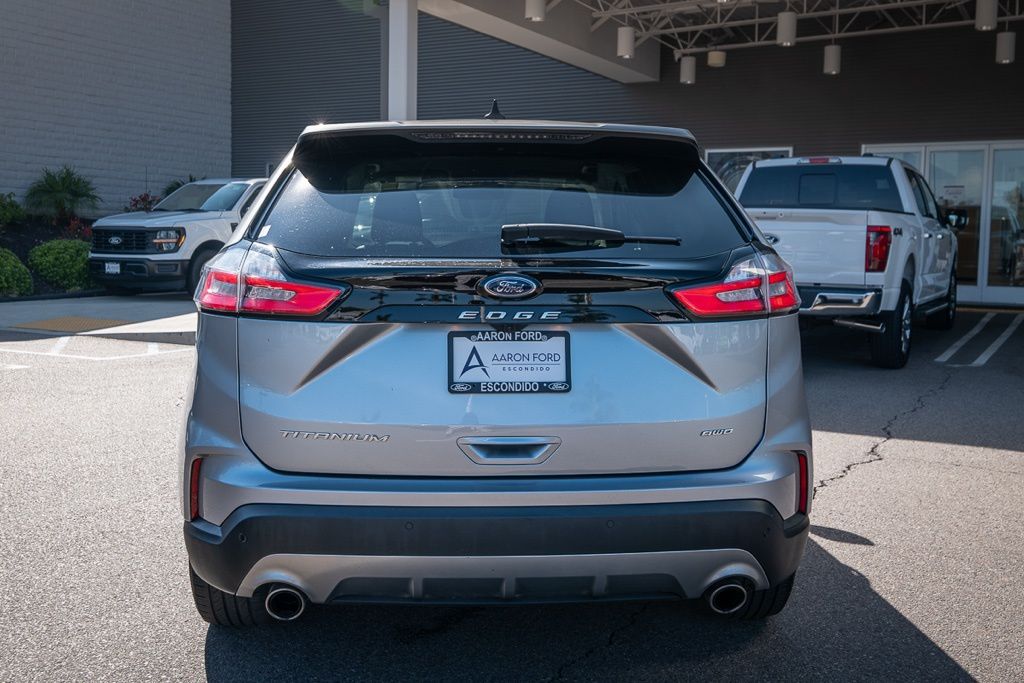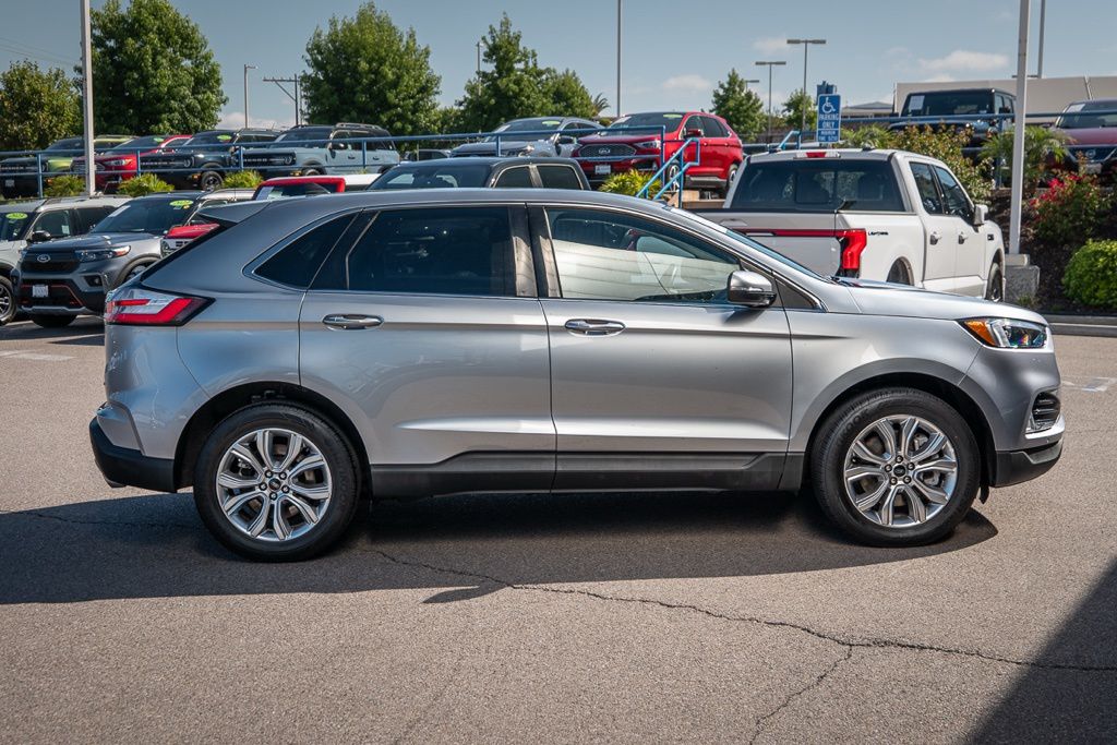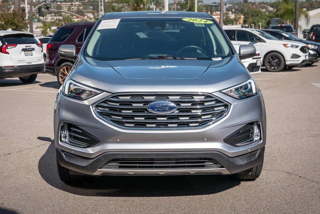 Silver Metallic 2024 Ford Edge Titanium AWD 8-Speed Automatic EcoBoost 2.0L I4 GTDi DOHC Turbocharged VCT AWD, 12 Speakers, Alloy wheels, Automatic temperature control, Equipment Group 300A, FordPass Connect, Front Bucket Seats, Front dual zone A/C, Heated front seats, Leather steering wheel, Memory seat, Panic alarm, Power driver seat, Power Liftgate, Power passenger seat, Radio: B&O Sound System by Bang & Olufsen, Security system, SiriusXM w/360L, SYNC 4A w/Enhanced Voice Recognition, Wheels: 19" Luster Nickel-Painted Aluminum.21/28 City/Highway MPG