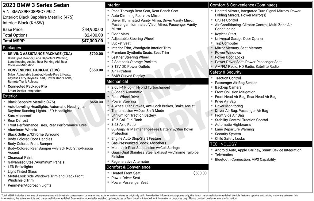 Black Sapphire Metallic 2023 BMW 3 Series 330e iPerformance RWD 8-Speed Automatic Sport 2.0L 4-Cylinder