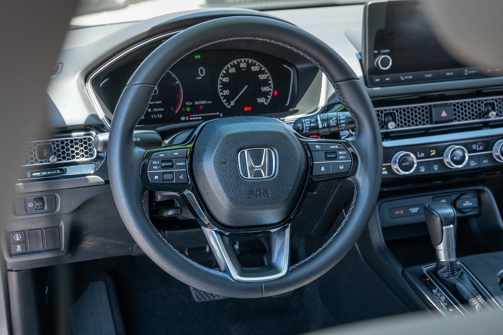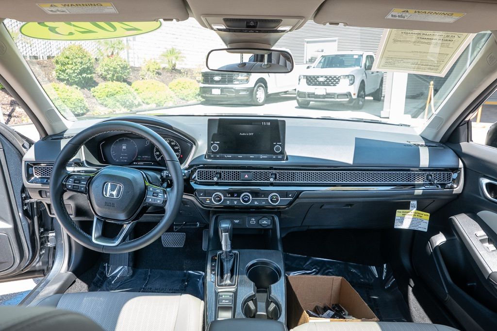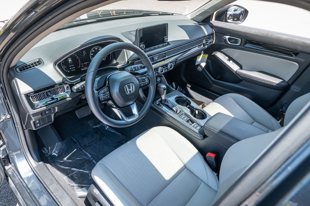 Gray 2023 Honda Civic EX-L w/o BSI FWD CVT 1.5L I4 DOHC 16V Black w/Leather Seat Trim, Adaptive Cruise Control: Adaptive Cruise Control (ACC) with Low-Speed Follow, Exterior Parking Camera Rear, Heated front seats, Lane departure: Lane Keeping Assist System (LKAS) active, Remote keyless entry.31/39 City/Highway MPG