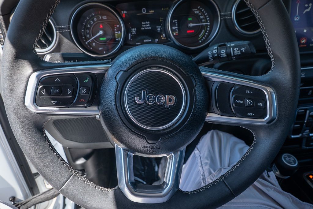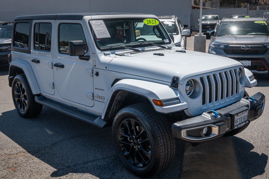Bright White Clearcoat 2023 Jeep Wrangler Sahara 4xe 4WD 8-Speed Automatic 2.0L I4 DOHC 2.0L I4 DOHC, 3.73 Rear Axle Ratio, 7 & 4 Pin Wiring Harness, 700 Amp Maintenance Free Battery, 9 Speakers, AM/FM radio: SiriusXM, Apple CarPlay/Android Auto, Automatic temperature control, Auxiliary Switches, Brake assist, Class II Receiver Hitch, Front dual zone A/C, Navigation System, ParkView Rear Back-Up Camera, Power door mirrors, Quick Order Package 29P Sahara, Radio: Uconnect 4C Nav w/8.4" Display, Sport Suspension, Trailer Tow & Aux Switch Group, Wheels: 20" x 8" Fully Painted Aluminum.Odometer is 1988 miles below market average!