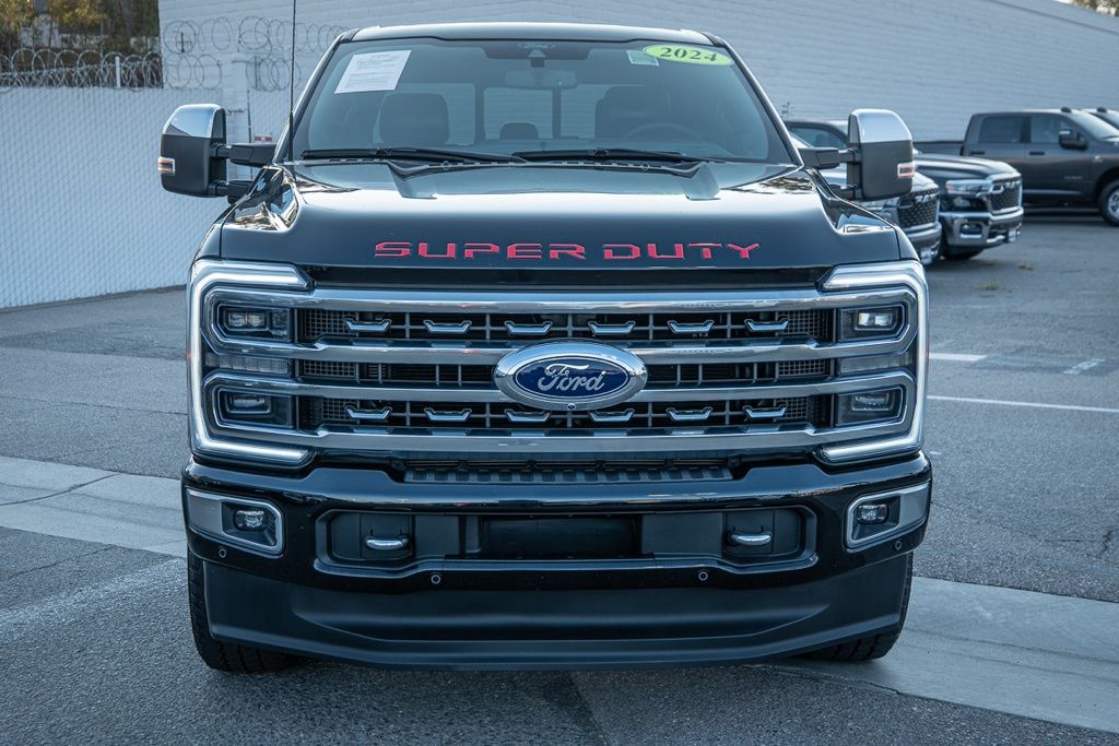 Agate Black Metallic 2024 Ford F-250SD Platinum 4WD 10-Speed Automatic 6.7L High Output Power Stroke V8 Diesel 4WD, 5th Wheel/Gooseneck Hitch Prep Package, Exterior Parking Camera Rear, F-250 >10K GVWR Package, FX4 Off-Road Package, High Capacity 11.6" Axle Upgrade Package, Hill Descent Control, Navigation system: Connected Navigation (includes complimentary 1-year trial), Off-Road Specifically Tuned Shock Absorbers, Twin Panel Power Moonroof, Unique FX4 Off-Road Box Decal, Wheels: 20" Bright Machined & Painted Aluminum.