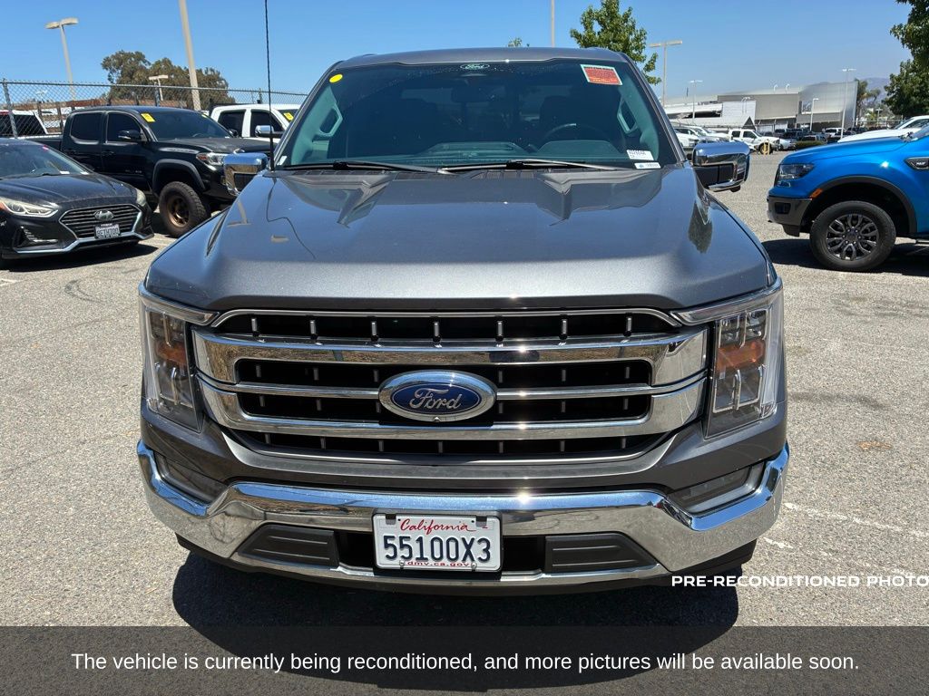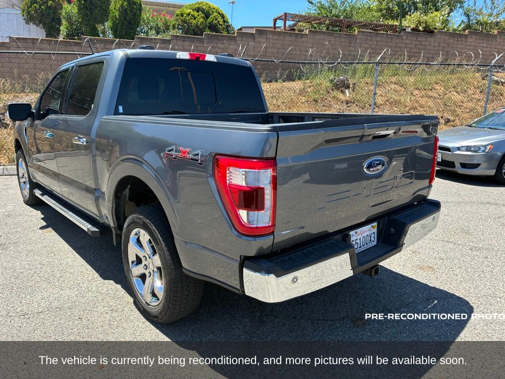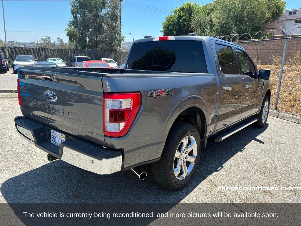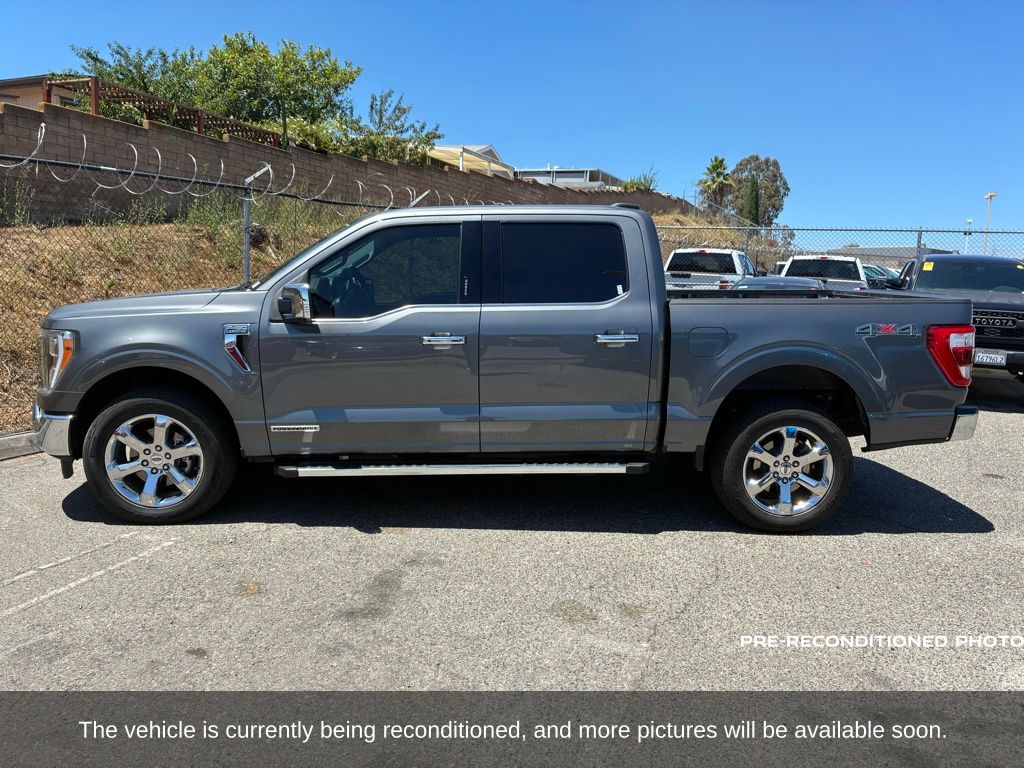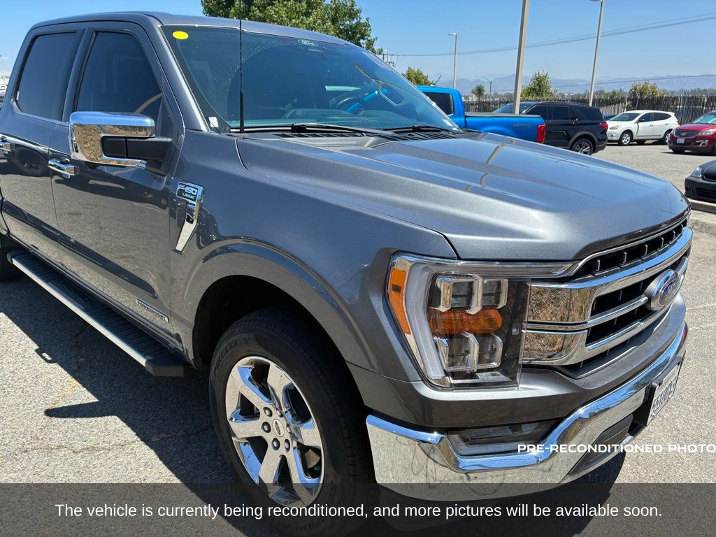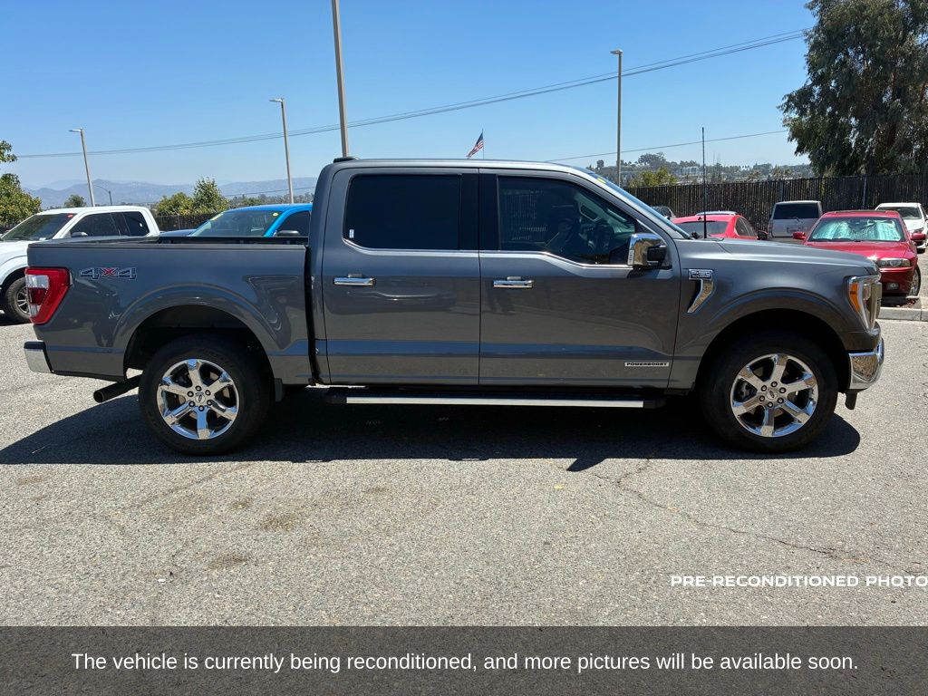 Gray Metallic 2022 Ford F-150 Lariat 4WD 10-Speed Automatic 3.5L PowerBoost Full-Hybrid V6 3.5L PowerBoost Full-Hybrid V6, 4WD, 6" Bright Polished Running Board, Chrome 2-Bar Grille w/4 Minor Bars, Chrome Door & Tailgate Handles w/Body-Color Bezel, Chrome Single-Tip Exhaust, Chrome Skull Caps on Exterior Mirrors, Class IV Trailer Hitch Receiver, Electronic Locking w/3.73 Axle Ratio, Equipment Group 501A Mid, Extended Range 36 Gallon Fuel Tank, Exterior Parking Camera Rear, Front dual zone A/C, Integrated Trailer Brake Controller, Lariat Chrome Appearance Package, Max Trailer Tow Package, Memory seat, Onboard 400W Outlet, Pedal memory, Power driver seat, Pro Trailer Backup Assist, Radio: B&O Sound System by Bang & Olufsen, Twin Panel Moonroof, Universal Garage Door Opener, Wheels: 18" Chrome-Like PVD.