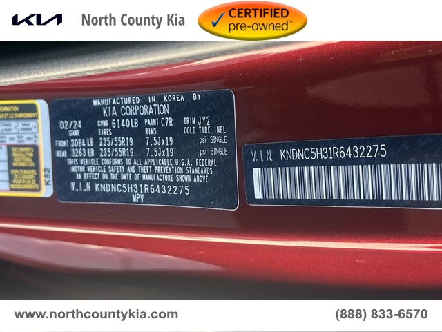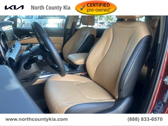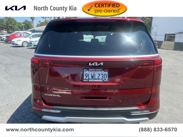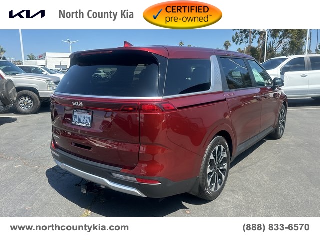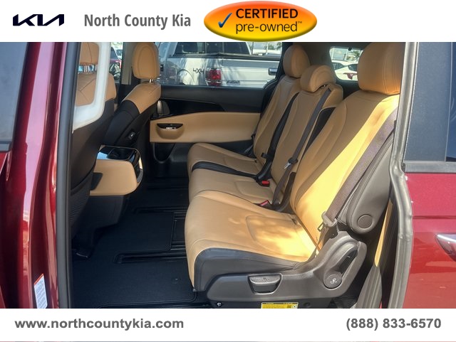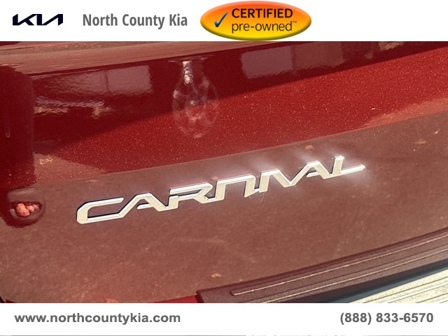 At North County Kia, our people make the difference! We take pride in our vehicles and do everything we can to make your buying experience top notch and you will not find better deals on nicer cars anywhere! We look forward to exceeding your expectations!.Carnival EX, 4D Passenger Van, 8-Speed Automatic, Flare Red, Saddle Brown Artificial Leather, Navigation System.CARFAX One-Owner. Clean CARFAX. Our People Make the Difference. We take pride in our vehicles and do everything we can to make your buying experience top notch and you will not find better deals on nicer cars anywhere! We look forward to exceeding your expectations!. Certified.Odometer is 1163 miles below market average! 19/26 City/Highway MPGKia Certified Pre-Owned Details: * Vehicle History * Limited Warranty: 12 Month/12,000 Mile (whichever comes first) "Platinum Coverage" from certified purchase date * Powertrain Limited Warranty: 120 Month/100,000 Mile (whichever comes first) from original in-service date * Roadside Assistance * Includes Rental Car and Trip Interruption Reimbursement. 3 month Sirius trial subscription * 165 Point Inspection * Warranty Deductible: $50 * Transferable Warranty