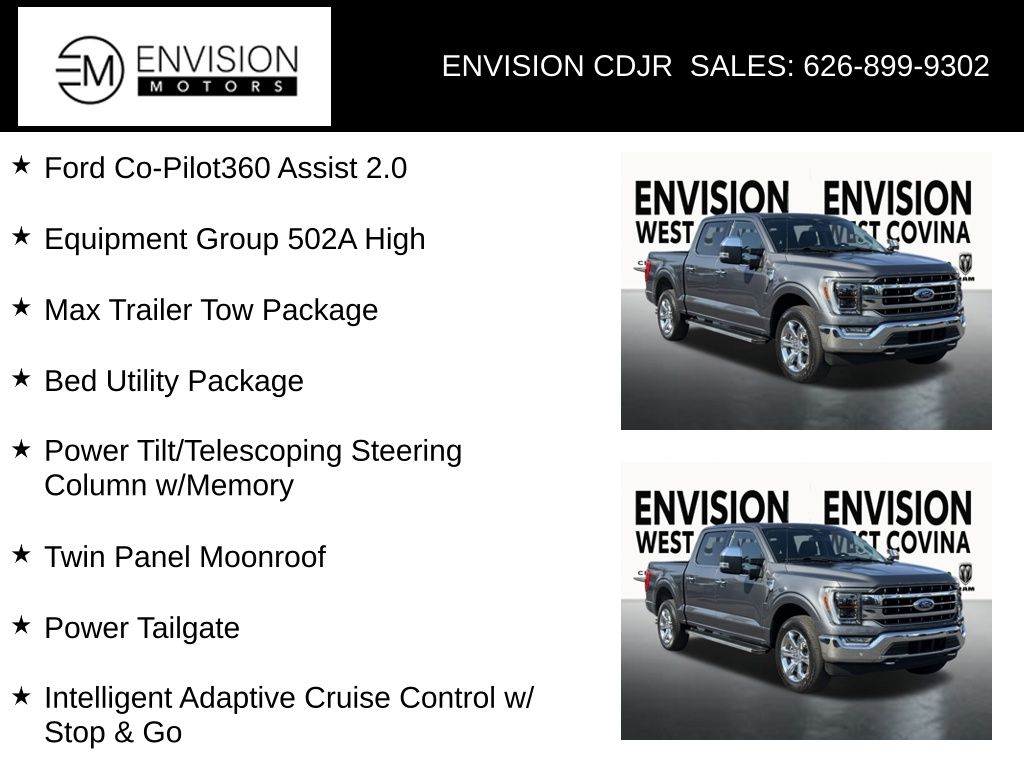 WE SPECIALIZE IN ALL CREDIT PROFILES! See what we can do for you! Call to find out (626) 899-9302.3.5L PowerBoost Full-Hybrid V6, 4WD, 2nd Row Heated Seats, Bed Utility Package, BoxLink, Class IV Trailer Hitch Receiver, Connected Built-In Navigation, Equipment Group 502A High, Evasive Steering Assist, Extended Range 36 Gallon Fuel Tank, Ford Co-Pilot360 Assist 2.0, Integrated Trailer Brake Controller, Intelligent Adaptive Cruise Control w/Stop & Go, Intersection Assist, LED Box Lighting, LED Projector w/Dynamic Bending Headlamps, Max Trailer Tow Package, Power Tailgate, Power Tilt/Telescoping Steering Column w/Memory, Pro Trailer Backup Assist & Pro Trailer Hitch Assist, Rain-Sensing Wipers, Speed Sign Recognition, Tailgate Step w/Tailgate Work Surface, Twin Panel Moonroof, Wheels: 20" Chrome-Like PVD, Wireless Charging Pad.Carbonized Gray Metallic2023 Ford F-150 Lariat 4WD 10-Speed Automatic 3.5L PowerBoost Full-Hybrid V6**********All Pricing and Advertised Prices for any/all vehicles offered for sale does not include dealer installed accessories which can be purchased for an additional cost.********** The Factory Rebates may not be available on this vehicle if you elect to take advantage of a Special Alternative APR or Special Lease program. Some Factory Rebates are California Resident specific and may vary for residents of other states. NO sales to Dealers, Brokers or Exporters. For out of state purchase, customers must be present to purchase. If shipping is required, dealership must facilitate; no exceptions. Please contact us for special Multi-Vehicle or Fleet pricing. Prices are plus government fees and taxes, any finance charges, $85 documentary fee, $29 electronic registration fee, any emission testing charge and $1.75 per new tire state tire fee. *** We make every effort to provide accurate information, but please verify before purchasing. Leasing & financing available on approved credit. Trade-ins accepted. Subject to prior sale.