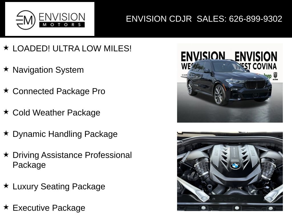 WE SPECIALIZE IN ALL CREDIT PROFILES! See what we can do for you! Call to find out (626) 899-9302.Clean CARFAX.Odometer is 14915 miles below market average! LOADED! ULTRA LOW MILES!, 2nd Row Captain's Chairs, 5-Zone Automatic Climate Control, Active Comfort Drive w/Road Preview, Active Driving Assistant Pro, Cold Weather Package, Connected Package Pro, Driving Assistance Professional Package, Dynamic Handling Package, Executive Package, Extended Traffic Jam Assistant, Front & Rear Heated Seats, Front Massaging Seats, Front Ventilated Seats, Glass Controls, harman/kardon Surround Sound System, harman/kardon® Speakers, Heated & Cooled Cup Holders, Increased Top Speed Limiter, Integral Active Steering, Leather Dashboard, Luxury Seating Package, Navigation System, Panoramic Sky Lounge LED Roof, Power moonroof: Panorama, Rear air conditioning, Wheels: 22" x 9.5" Fr & 22" x 10.5" Rr Y-Spoke, Wireless Charging.Carbon Black Metallic2022 BMW X7 M50i AWD 8-Speed Automatic Sport 4.4L V8 DOHC 32V**********All Pricing and Advertised Prices for any/all vehicles offered for sale does not include dealer installed accessories which can be purchased for an additional cost.********** The Factory Rebates may not be available on this vehicle if you elect to take advantage of a Special Alternative APR or Special Lease program. Some Factory Rebates are California Resident specific and may vary for residents of other states. NO sales to Dealers, Brokers or Exporters. For out of state purchase, customers must be present to purchase. If shipping is required, dealership must facilitate; no exceptions. Please contact us for special Multi-Vehicle or Fleet pricing. Prices are plus government fees and taxes, any finance charges, $85 documentary fee, $29 electronic registration fee, any emission testing charge and $1.75 per new tire state tire fee. *** We make every effort to provide accurate information, but please verify before purchasing. Leasing & financing available on approved credit. Trade-ins accepted. Subject to prior sale.