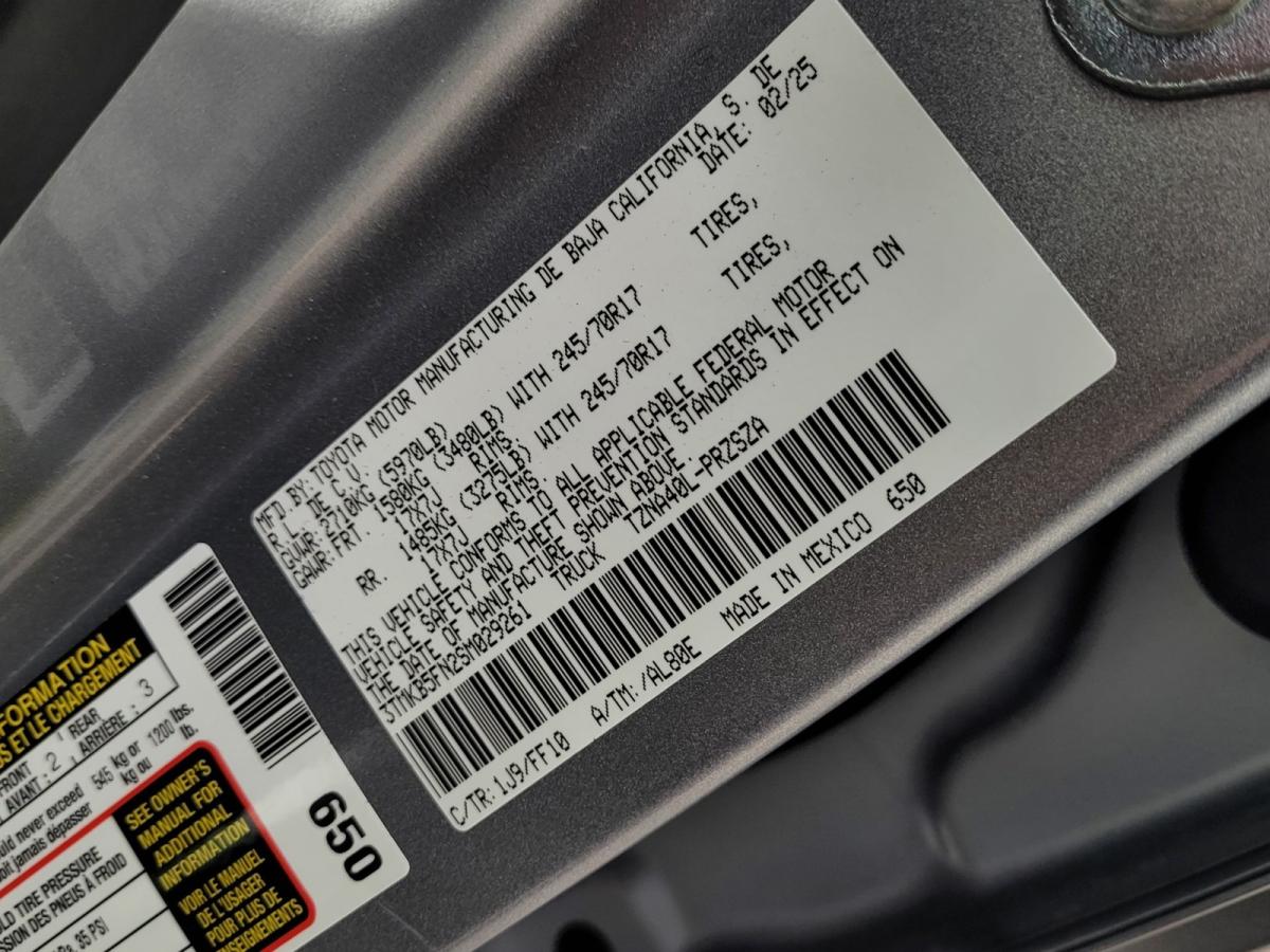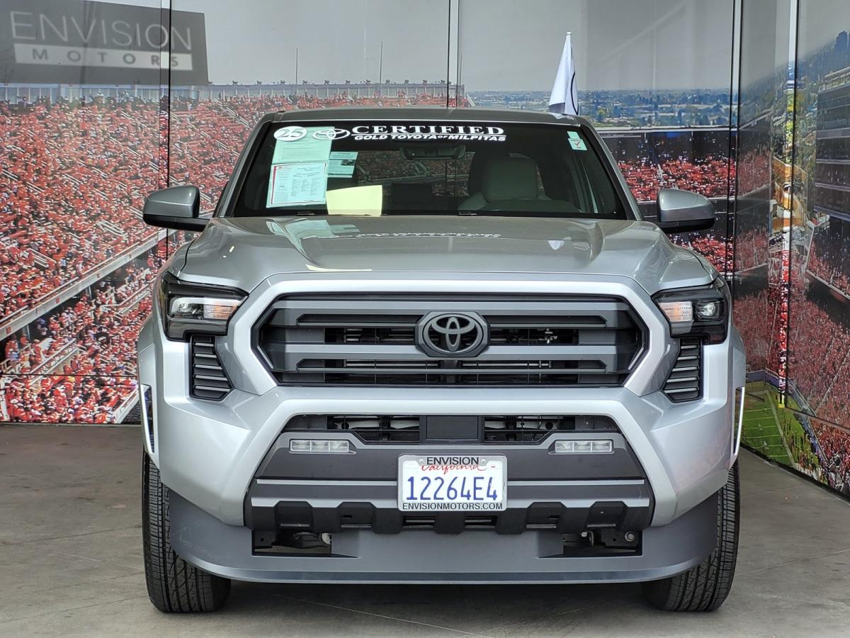 Certified.**ADAPTIVE CRUISE CONTROL**, **APPLE CAR PLAY**, **BACKUP CAMERA**, **BLIND SPOT MONITORS**, **BLUETOOTH**, **PUSH BUTTON IGNITION**, **AUTOMATIC TRANSMISION**, Tacoma SR5, 4D Double Cab, 2.4L 4-Cylinder, 8-Speed Automatic, RWD, Celestial Silver, Boulder Cloth.21/26 City/Highway MPG 2025 Toyota Tacoma SR5 RWD 8-Speed AutomaticToyota Gold Certified Details: * Roadside Assistance for 7 Year / 100,000 Mile. Standard New-Car Financing Rates Available. Warranty honored at over 1,400 Toyota dealers in the continental U.S. & Canada. Trade-ins accepted. Trouble-free handling of your transaction, including DMV paperwork * Limited Warranty: 12 Month/12,000 Mile Limited Comprehensive Warranty: 12 Month/12,000 Mile (whichever comes first) from certified purchase date * Vehicle History * Powertrain Limited Warranty: 84 Month/100,000 Mile (whichever comes first) from TCUV purchase date * Roadside Assistance * Transferable Warranty * Warranty Deductible: $0 * 160 Point Inspection** ASK US ABOUT FREE DELIVERY (408) 240-1400 ** Envision Toyota of Milpitas serves the San Jose and San Francisco Bay Areas. We continually develop new, fresh, and inventive ways to provide great service and exceptional customer satisfaction to our customers. Envision's professionalism, technical knowledge, products, services and respect for the environment, are truly five-star.Price does not include $85 dealer doc fee.