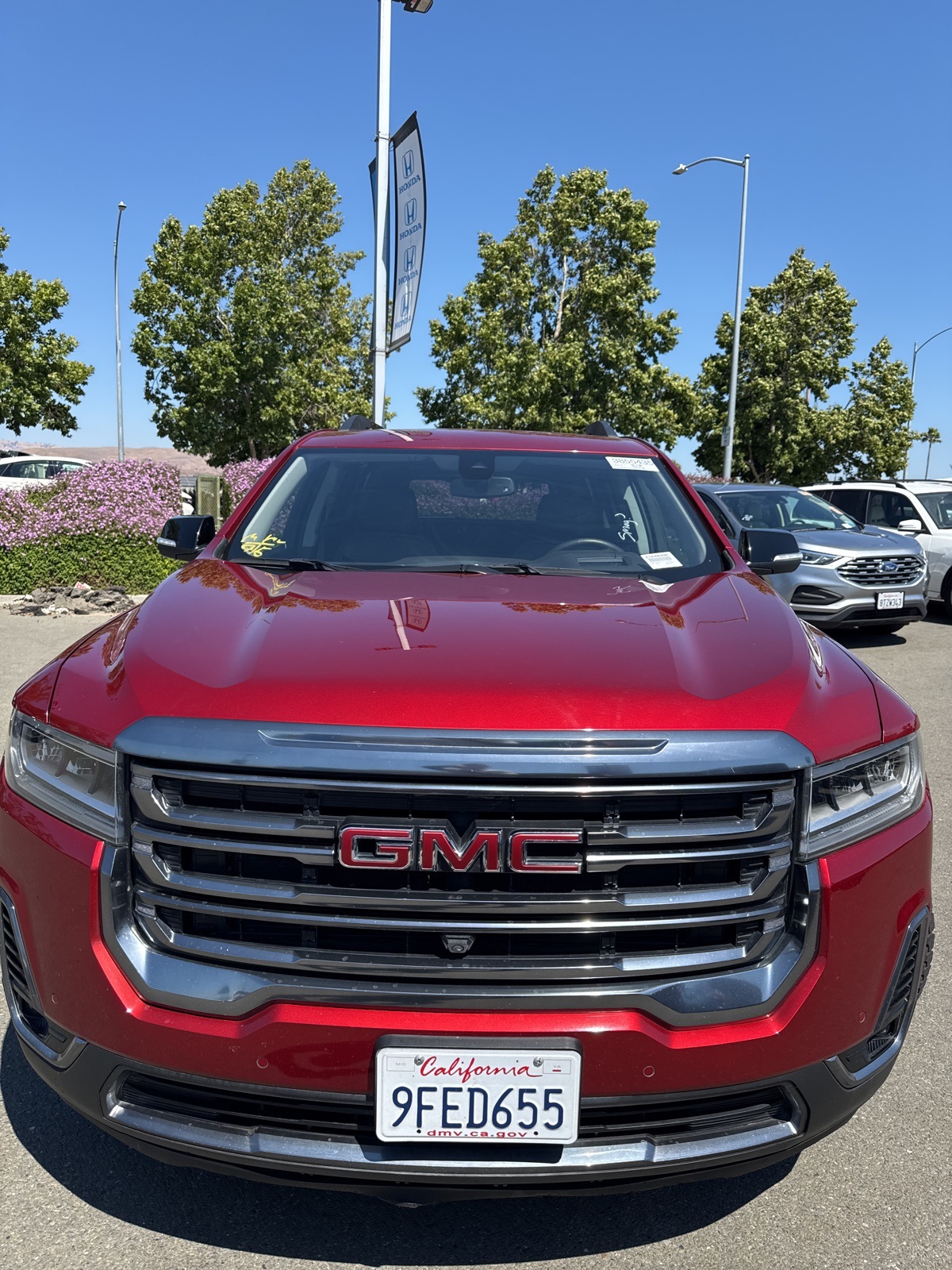 19/26 City/Highway MPGAcadia AT4, 4D Sport Utility, 3.6L V6 SIDI, 9-Speed Automatic, AWD, Volcanic Red Tintcoat, Jet Black Leather.Volcanic Red Tintcoat 2023 GMC Acadia AT4 3.6L V6 SIDI AWD 9-Speed Automatic** FREE DELIVERY UP TO 30 MILES! **Envision Honda of Milpitas - Where the customer comes first! CALL (408) 324-7400.