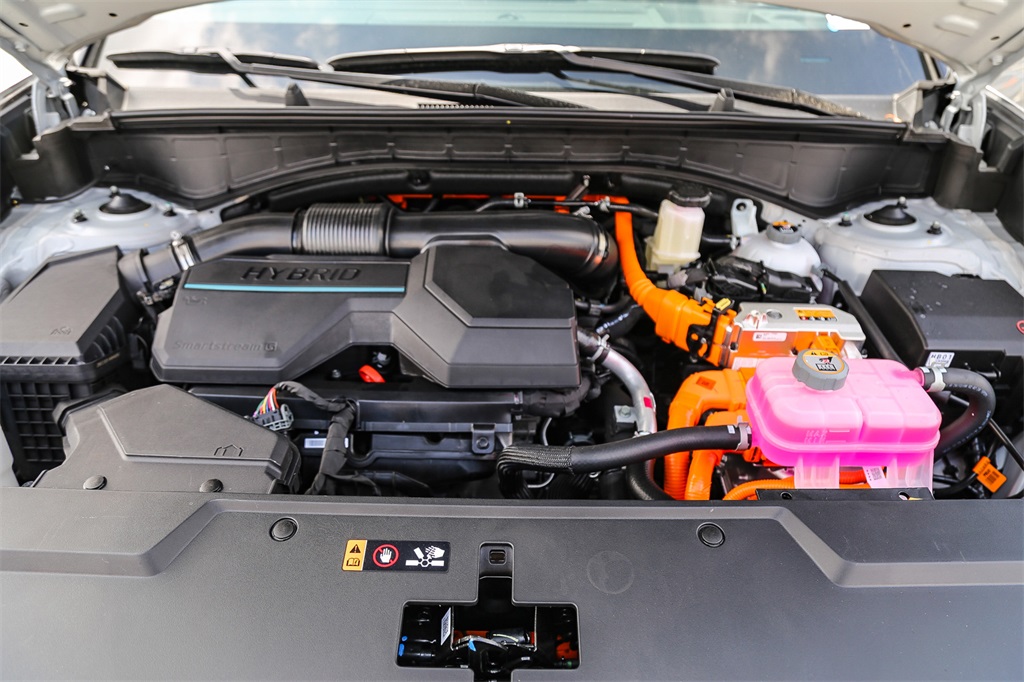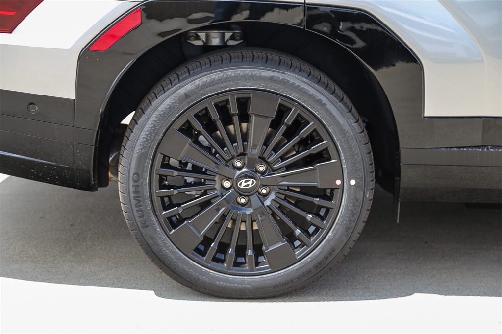 35/34 City/Highway MPG Shimmering Silver 2025 Hyundai Santa Fe Hybrid Calligraphy AWD 6-Speed Automatic with Shiftronic I4