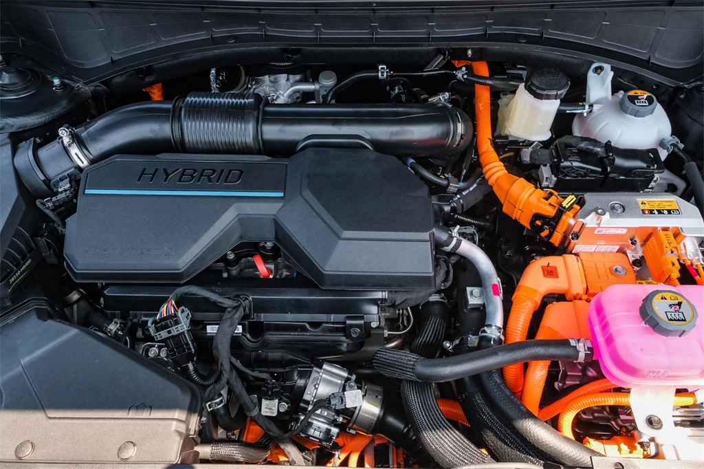 35/34 City/Highway MPG Phantom Black 2025 Hyundai Santa Fe Hybrid Calligraphy AWD 6-Speed Automatic with Shiftronic I4