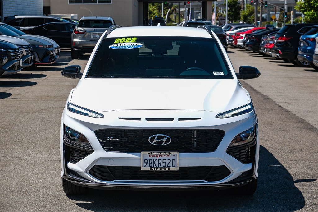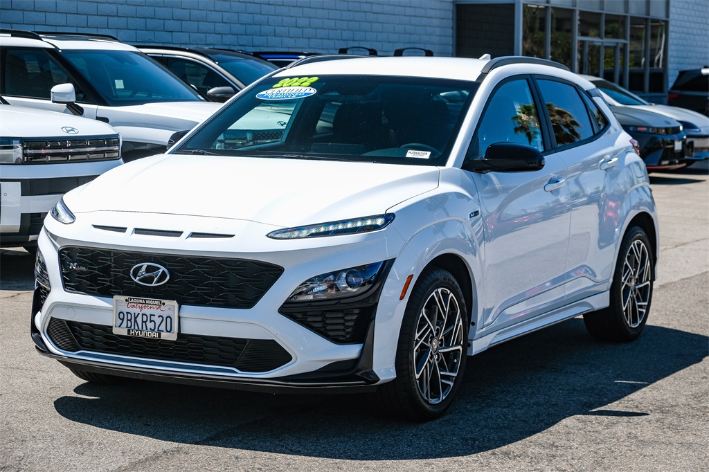 At Laguna Niguel Hyundai the customer always comes first! We have great financing options available 1 click away at: https://www.lagunaniguelhyundai.com/finance/apply-for-financing/ We're conveniently located at 28432 Camino Capistrano, Laguna Niguel, CA 92677 Just a short drive away from LA and OC! https://www.lagunaniguelhyundai.com/contact-us/ Sales: 949-409-0521 Service: 949-997-1059 Parts: 949-997-1059 Please chat, email, text or call to verify any information in question and to schedule your product preview! We have proudly served Southern California and look forward to earning your business!Certified. 29/35 City/Highway MPG Lunar White 2022 Hyundai Kona N Line FWD 7-Speed Automatic 1.6L I4 DGI Turbocharged DOHC 16V LEV3-ULEV70 195hpHyundai Certified Used Vehicles Details: * Vehicle History * Roadside Assistance * Warranty Deductible: $50 * 173+ Point Inspection * Powertrain Limited Warranty: 120 Month/100,000 Mile (whichever comes first) from original in-service date * Includes 10-year/Unlimited Mileage Roadside Assistance with Rental Car and Trip Interruption Reimbursement; Please See Dealers for Specific Vehicle Eligibility Requirements. 10-Year/100,000 Mile Hybrid/EV Battery Warranty. 3-Months SiriusXM Trial Subscription. Complimentary 1 Year (Connected Care & Remote Pkgs). * Limited Warranty: 60 Month/60,000 Mile (whichever comes first) from original in-service dateWww., Oustanding Financing, Excellent Selection of Used Vehicles, serving LA, South Bay, Redondo Beach, Torrance, Hawthorne, Hermosa Beach, Manhattan Beach, Palos Verdes, Orange County, Cerritos, Gardena, Longbeach.