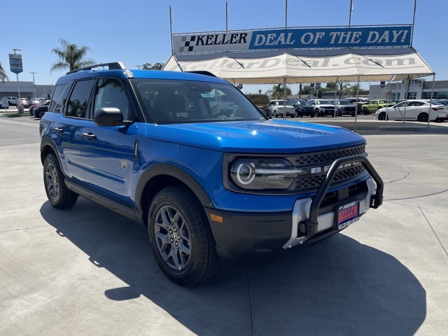 Keller Ford is please to offer this 2025 Ford Bronco Sport Big Bend Velocity Blue Metallic. 1.5L EcoBoost Factory MSRP: $34,990 $750 off MSRP! 110V/400W AC Power Outlet, 2nd Row Carpeted Seatback, 4-Wheel Disc Brakes, 6 Speakers, ABS brakes, Air Conditioning, Alloy wheels, AM/FM radio: SiriusXM, AM/FM Stereo, Auto High-beam Headlights, Automatic temperature control, Auxiliary Switches & Wiring, Black Diamond Off-Road Package, Brake assist, Brush Guard, Cargo Management System (Shelf/Divider/Table), Cargo Mat, Class II Trailer Tow Pack w/Trailer Sway Control, Cloth w/Easy-to-Clean Front Bucket Seats, Compass, Delay-off headlights, Driver door bin, Driver vanity mirror, Dual front impact airbags, Dual front side impact airbags, Electronic Stability Control, Emergency communication system: SYNC 4 911 Assist, Fender Tie Downs, Four wheel independent suspension, Front & Rear Black Bumpers, Front & Rear Floor Liners w/o Carpet Mats, Front anti-roll bar, Front Bucket Seats, Front Center Armrest, Front License Plate Bracket, Front reading lights, Fully automatic headlights, Heated door mirrors, Illuminated entry, Interior Grab Handle, Knee airbag, Low tire pressure warning, Occupant sensing airbag, Outside temperature display, Overhead airbag, Overhead console, Panic alarm, Passenger door bin, Passenger vanity mirror, Power door mirrors, Power steering, Power windows, Radio data system, Rear anti-roll bar, Rear Parking Sensors, Rear reading lights, Rear seat center armrest, Rear window defroster, Rear window wiper, Recovery Hooks, Remote keyless entry, Security system, SiriusXM, Speed control, Speed-sensing steering, Speed-Sensitive Wipers, Split folding rear seat, Steering wheel mounted audio controls, SYNC 4 w/Enhanced Voice Recognition, Tachometer, Telescoping steering wheel, Tilt steering wheel, Traction control, Trip computer, Variably intermittent wipers, Wheels: 17" Carbonized Gray Painted Aluminum, Wheels: 17" Carbonized Gray-Painted Aluminum. 25/30 City/Highway MPGwww.kellerfordhanford.com Excellent selection of Vehicles, Financing options, serving Hanford, Lemoore, Armona, Visalia, Tulare, Fresno, Goshen, Kings County, Tulare County, Fresno County, San Joaquin County, Bakersfield, Kern County. Price excludes government fees and taxes, dealer documentation fee of $85, and any emission testing charge. Prices Are Based On Financing Through Ford Automotive Financial Services OAC: Price is after all Factory Rebates and Incentives, customer may qualify for additional rebates. Limited to stock on hand. See dealer for details, OAC. $500 - Retail Bonus Cash. Exp. 09/30/2025