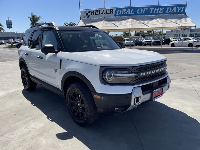 Keller Ford is please to offer this 2025 Ford Bronco Sport Badlands Oxford White. EcoBoost 2.0L I4 GTDi DOHC Turbocharged VCT Factory MSRP: $44,100 $750 off MSRP! 4-Wheel Disc Brakes, 6 Speakers, ABS brakes, Air Conditioning, Alloy wheels, AM/FM radio: SiriusXM, AM/FM Stereo, Auto High-beam Headlights, Auto-dimming Rear-View mirror, Automatic temperature control, B&O Sound System by Bang & Olufsen, Badlands Tech Package, Brake assist, Compass, Connected Navigation, Delay-off headlights, Driver door bin, Driver vanity mirror, Dual front impact airbags, Dual front side impact airbags, Electronic Stability Control, Emergency communication system: SYNC 4 911 Assist, Four wheel independent suspension, Front anti-roll bar, Front Bucket Seats, Front Center Armrest, Front fog lights, Front License Plate Bracket, Front reading lights, Fully automatic headlights, Garage door transmitter, HD Radio, Heated door mirrors, Heated front seats, Heated steering wheel, Illuminated entry, Knee airbag, Leather Trimmed Front Bucket Seats, Low tire pressure warning, Memory seat, Occupant sensing airbag, Outside temperature display, Overhead airbag, Overhead console, Panic alarm, Passenger door bin, Passenger vanity mirror, Power door mirrors, Power driver seat, Power Moonroof, Power passenger seat, Power steering, Power windows, Radio data system, Rear anti-roll bar, Rear reading lights, Rear seat center armrest, Rear window defroster, Rear window wiper, Remote keyless entry, Security system, SiriusXM, Speed control, Speed-sensing steering, Speed-Sensitive Wipers, Split folding rear seat, Steering wheel mounted audio controls, SYNC 4 w/Enhanced Voice Recognition, Tachometer, Telescoping steering wheel, Tilt steering wheel, Traction control, Trip computer, Variably intermittent wipers, Wheels: 17" Matte Black-Painted Aluminum. 21/27 City/Highway MPGwww.kellerfordhanford.com Excellent selection of Vehicles, Financing options, serving Hanford, Lemoore, Armona, Visalia, Tulare, Fresno, Goshen, Kings County, Tulare County, Fresno County, San Joaquin County, Bakersfield, Kern County. Price excludes government fees and taxes, dealer documentation fee of $85, and any emission testing charge. Prices Are Based On Financing Through Ford Automotive Financial Services OAC: Price is after all Factory Rebates and Incentives, customer may qualify for additional rebates. Limited to stock on hand. See dealer for details, OAC. $500 - Retail Bonus Cash. Exp. 09/30/2025
