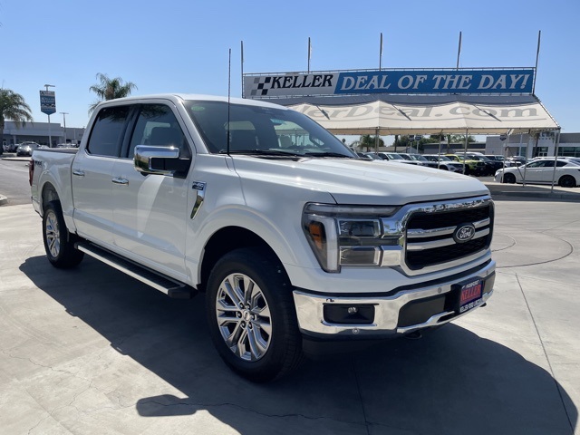 Keller Ford is please to offer this 2025 Ford F-150 Lariat Star White Metallic Tri-Coat. 3.5L PowerBoost Full-Hybrid V6 Factory MSRP: $71,455 $1,000 off MSRP! 3.31 Axle Ratio, 4-Wheel Disc Brakes, 4x4 FX4 Off-Road Bodyside Decal, 8 Speakers, ABS brakes, ActiveX Trimmed Bucket Seats, Adjustable pedals, Air Conditioning, Alloy wheels, AM/FM radio: SiriusXM with 360L, Auto High-beam Headlights, Auto-dimming door mirrors, Auto-dimming Rear-View mirror, Automatic temperature control, Brake assist, Bumpers: chrome, Chrome wheels, Compass, Console Worksurface, Delay-off headlights, Driver door bin, Driver vanity mirror, Dual front impact airbags, Dual front side impact airbags, Electronic Locking w/3.55 Axle Ratio, Electronic Stability Control, Emergency communication system: SYNC 4 911 Assist, Front anti-roll bar, Front Bucket Seats, Front Center Armrest, Front dual zone A/C, Front fog lights, Front License Plate Bracket, Front reading lights, Front wheel independent suspension, Fully automatic headlights, FX4 Off-Road Package, Garage door transmitter, Heated door mirrors, Heated front seats, Heated steering wheel, Hill Descent Control, Illuminated entry, Low tire pressure warning, Memory seat, Mobile Office Package, Monotube Rear Shocks, Navigation system: Connected Navigation, Occupant sensing airbag, Off-Road Tuned Front Shock Absorbers, Outside temperature display, Overhead airbag, Overhead console, Panic alarm, Partitioned Lockable Rear Storage, Passenger door bin, Passenger vanity mirror, Pedal memory, Power door mirrors, Power driver seat, Power passenger seat, Power steering, Power windows, Radio data system, Radio: B&O Sound System by Bang & Olufsen, Rain sensing wipers, Rear reading lights, Rear seat center armrest, Rear step bumper, Rear window defroster, Remote keyless entry, Rock Crawl Mode, Security system, Speed control, Split folding rear seat, Steering wheel mounted audio controls, SYNC 4 w/Enhanced Voice Recognition, Tachometer, Telescoping steering wheel, Tilt steering wheel, Tow/Haul Package, Traction control, Tray Style Floor Liner w/o Carpet Mats, Trip computer, Turn signal indicator mirrors, Variably intermittent wipers, Ventilated front seats, Voltmeter, Wheels: 18" Chrome-Like PVD, Wireless Charging.www.kellerfordhanford.com Excellent selection of Vehicles, Financing options, serving Hanford, Lemoore, Armona, Visalia, Tulare, Fresno, Goshen, Kings County, Tulare County, Fresno County, San Joaquin County, Bakersfield, Kern County. Price excludes government fees and taxes, dealer documentation fee of $85, and any emission testing charge.