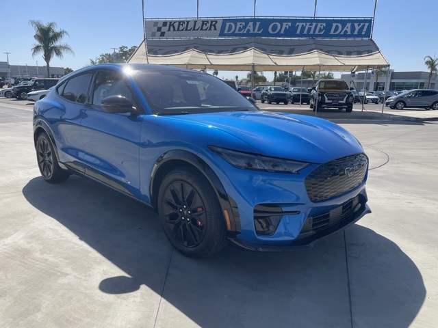 Keller Ford is please to offer this 2025 Ford Mustang Mach-E Premium Velocity Blue Metallic. Electric Motor Factory MSRP: $54,555 $1,979 off MSRP! 10 Speakers, 1st & 2nd Row Floor Liners w/o Carpet Mats, 4-Wheel Disc Brakes, ABS brakes, Air Conditioning, Alloy wheels, AM/FM radio: SiriusXM with 360L, Apple CarPlay/Android Auto, Auto High-beam Headlights, Auto-dimming Rear-View mirror, Automatic temperature control, Brake assist, Brembo Branded Front Brakes, Bumpers: body-color, Cargo Area Cover, Cargo Floor Liner, Compass, Delay-off headlights, Driver door bin, Driver vanity mirror, Dual front impact airbags, Dual front side impact airbags, Electronic Stability Control, Emergency communication system: 911 Assist, Exterior Parking Camera Rear, Four wheel independent suspension, Front anti-roll bar, Front Bucket Seats, Front Center Armrest, Front dual zone A/C, Front License Plate Bracket, Front reading lights, Fully automatic headlights, Garage door transmitter, Heated door mirrors, Heated front seats, Heated steering wheel, Heated/Ventilated Perforated ActiveX Bucket Seats, Illuminated entry, Interior Protection Package, Knee airbag, Low tire pressure warning, Memory seat, Mobile Power Cord (120V/240V), Navigation system: Connected Navigation, Occupant sensing airbag, Outside temperature display, Overhead airbag, Overhead console, Panic alarm, Panoramic Fixed-Glass Roof, Passenger door bin, Passenger vanity mirror, Power door mirrors, Power driver seat, Power Liftgate, Power passenger seat, Power steering, Power windows, Radio data system, Radio: B&O Sound System by Bang & Olufsen, Rain sensing wipers, Rear anti-roll bar, Rear seat center armrest, Rear side impact airbag, Rear window defroster, Rear window wiper, Red Painted Front & Rear Brake Calipers, Remote keyless entry, Security system, SiriusXM w/360L, Speed control, Speed-sensing steering, Speed-Sensitive Wipers, Split folding rear seat, Spoiler, Sport Appearance Package, Sport Pedals, Steering wheel mounted audio controls, SYNC 4A w/Enhanced Voice Recognition, Telescoping steering wheel, Tilt steering wheel, Traction control, Trip computer, Turn signal indicator mirrors, Unique Front Fascia, Variably intermittent wipers, Ventilated front seats, Wheels: 19" Bright Machined-Face Aluminum, Wheels: 19" Monochromatic High Gloss Black-Painted. 115/104 City/Highway MPGwww.kellerfordhanford.com Excellent selection of Vehicles, Financing options, serving Hanford, Lemoore, Armona, Visalia, Tulare, Fresno, Goshen, Kings County, Tulare County, Fresno County, San Joaquin County, Bakersfield, Kern County. Price excludes government fees and taxes, dealer documentation fee of $85, and any emission testing charge. Prices Are Based On Financing Through Ford Automotive Financial Services OAC: Price is after all Factory Rebates and Incentives, customer may qualify for additional rebates. Limited to stock on hand. See dealer for details, OAC. $1000 - Retail Bonus Cash. Exp. 09/30/2025 $1000 - Summer Sales Event ZEV State Retail Bonus Cash. Exp. 09/02/2025