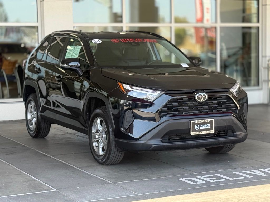 ** BLUETOOTH, ** APPLE CAR PLAY/ ANDROID AUTO, Toyota Safety Sense 2.5: Pre-Collision Sys w/Pedestrian Detection, Full-Speed Range Dynamic Radar Cruise Control, Lane Departure Alert w/Steering Assist, Lane Tracing Assist, Automatic High Beams, Road Sign Assist 8 Airbags; Star Safety System Connected Services Capable. 4G Network Dependent. See Toyota.com For Details. LATCH-Lower Anchor & Tether For CHildren Backup Camera w/ Dynamic Gridlines Blind Spot Monitor w/ Rear Cross-Traffic Alert, Black w/Fabric Seat Trim, 4-Wheel Disc Brakes, 6 Speakers, ABS brakes, Air Conditioning, Alloy wheels, AM/FM radio: SiriusXM, Auto High-beam Headlights, Automatic temperature control, Axle Ratio: 3.177, Brake assist, Bumpers: body-color, Delay-off headlights, Driver door bin, Driver vanity mirror, Dual front impact airbags, Dual front side impact airbags, Electronic Stability Control, Emergency communication system: Safety Connect (10-year trial), Exterior Parking Camera Rear, Fabric Seat Trim, Four wheel independent suspension, Front anti-roll bar, Front Bucket Seats, Front Center Armrest, Front dual zone A/C, Front reading lights, Fully automatic headlights, Illuminated entry, Knee airbag, Low tire pressure warning, Occupant sensing airbag, Outside temperature display, Overhead airbag, Overhead console, Panic alarm, Passenger door bin, Passenger vanity mirror, Power door mirrors, Power driver seat, Power steering, Power windows, Radio data system, Radio: AM/FM/XM Audio System, Rear anti-roll bar, Rear seat center armrest, Rear window defroster, Rear window wiper, Remote keyless entry, Speed control, Speed-sensing steering, Split folding rear seat, Spoiler, Steering wheel mounted audio controls, Tachometer, Telescoping steering wheel, Tilt steering wheel, Traction control, Trip computer, Turn signal indicator mirrors, Variably intermittent wipers, Wheels: 17" 5-Spoke Silver Alloy.Midnight Black Metallic 2024 Toyota RAV4 XLE FWD 8-Speed Automatic 2.5L 4-Cylinder DOHC Dual VVT-iOdometer is 7139 miles below market average! 27/35 City/Highway MPG*Vehicle may have dealer added equipment not reflected in price.