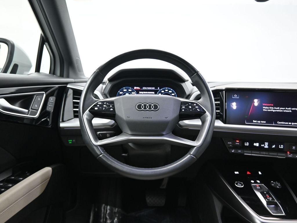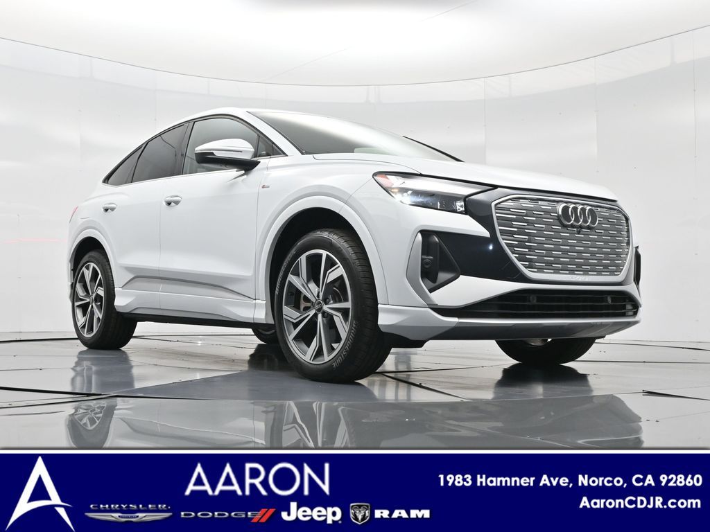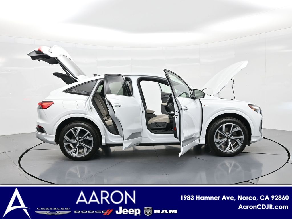 2023 Audi Q4 Sportback 50 e-tron quattro Premium, dual-motor all-electric AWD, single-speed automatic, 1-Owner, no accidents, just over 16,000 miles, 95 MPGe.Equipped with Convenience Package including Audi advanced key, alarm with motion sensor, power folding mirrors, dual-pane acoustic glass, and SiriusXM with 360L. Para la version en espanol, vea abajo.Performance highlights feature 82 kWh battery, 295 hp output, progressive steering, quattro AWD, and an estimated 242-mile driving range with Level 2 charging in about 9 hours.Interior technology includes 11.6-inch MMI touchscreen with navigation, Audi virtual cockpit (10.25), smartphone interface, wireless charging pad, and premium sound system.Luxury details add leather seating, heated front seats, heated exterior mirrors, panoramic sunroof, power liftgate, LED matrix headlights, and ambient interior lighting.We keep it simple with transparent pricing, thorough reconditioning, and easy financing. Our no-pressure team is dedicated to answering questions and making the process stress-free. Ready to see it up close? Contact us today to schedule a no-obligation test drive or virtual tour.2023 Audi Q4 Sportback 50 e-tron quattro Premium, AWD totalmente electrico con doble motor, transmision automatica de una velocidad, 1 dueno, sin accidentes, poco mas de 16,000 millas, 95 MPGe.Equipado con el paquete Convenience que incluye Audi advanced key, alarma con sensor de movimiento, espejos electricos plegables, cristales acusticos dobles y SiriusXM con 360L.Destacan su bateria de 82 kWh, potencia de 295 hp, direccion progresiva, traccion quattro y autonomia estimada de 242 millas con carga completa en unas 9 horas en nivel 2.La tecnologia interior incluye pantalla tactil MMI de 11.6 pulgadas con navegacion, Audi virtual cockpit de 10.25, interfaz para smartphone, cargador inalambrico y sistema de audio premium.Los detalles de lujo agregan asientos de piel con calefaccion, espejos exteriores calefactables, quemacocos panoramico, porton trasero electrico, faros LED Matrix y luz ambiental interior.Mantenemos un proceso transparente, reacondicionamiento minucioso y financiamiento sencillo. Nuestro equipo sin presion esta listo para responder tus dudas y brindarte confianza. Da el siguiente paso escribiendonos para una cotizacion personalizada o para agendar una prueba de manejo conveniente.