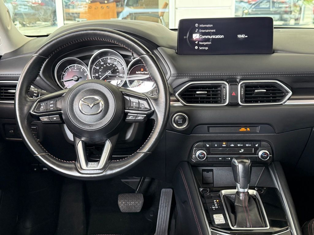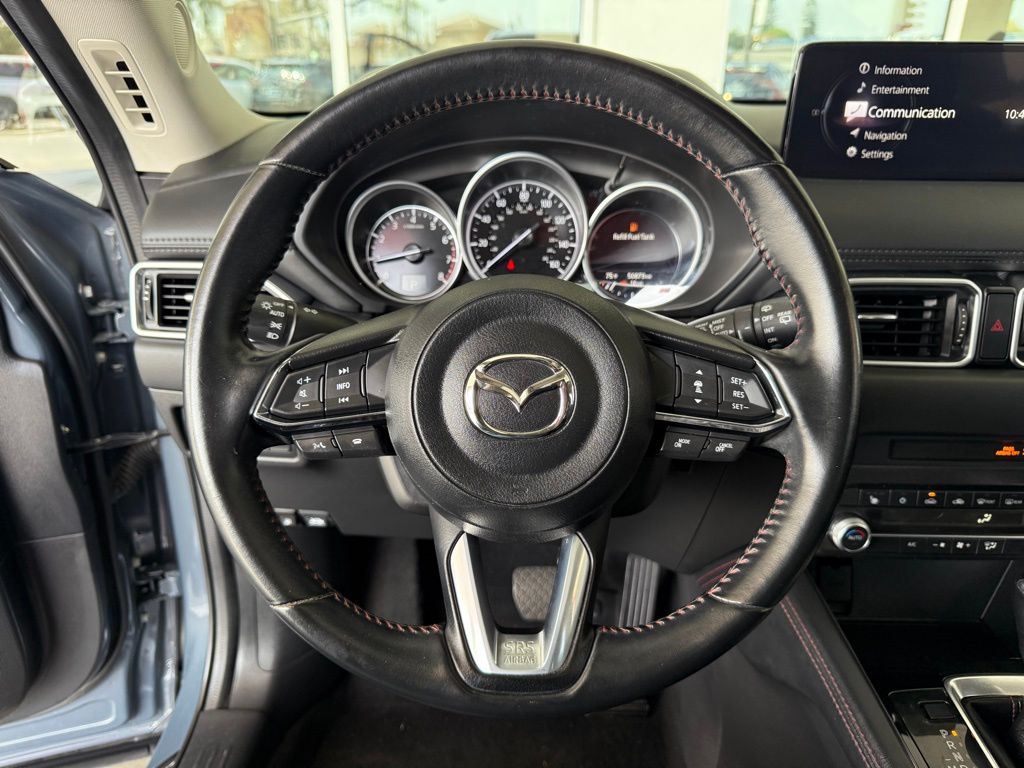 Clean CARFAX.** BLUETOOTH, ** APPLE CAR PLAY/ ANDROID AUTO, BLIND SPOT MONITORING, LANE DEPARTURE WARNING SYSTEM LANE KEEP ASSIST REAR CROSS TRAFFIC ALERT, POWER MOONROOF, PUSH BUTTON ENGINE START 4 USB INPUTS, REARVIEW CAMERA, 4-Wheel Disc Brakes, 4.624 Axle Ratio, 6 Speakers, ABS brakes, Air Conditioning, All-Weather Floor Mats, Alloy wheels, AM/FM radio, AppLink/Apple CarPlay and Android Auto, Auto High-beam Headlights, Auto-dimming Rear-View mirror, Automatic temperature control, Bose Audio Credit, Brake assist, Bumpers: body-color, Cargo Net, Delay-off headlights, Driver door bin, Driver vanity mirror, Dual front impact airbags, Dual front side impact airbags, E911 Automatic Emergency Notification, Electronic Stability Control, Emergency communication system: MAZDA CONNECT, Exterior Parking Camera Rear, Four wheel independent suspension, Front anti-roll bar, Front Bucket Seats, Front Center Armrest w/Storage, Front dual zone A/C, Front reading lights, Fully automatic headlights, Garage door transmitter: HomeLink, Heated Front Bucket Seats, Heated front seats, Illuminated Door Sill Trim Plates, Illuminated entry, Infotainment System Voice Command, Leather Seat Trim, Leather Shift Knob, Low tire pressure warning, Memory seat, Multifunction Commander Control, Occupant sensing airbag, Outside temperature display, Overhead airbag, Overhead console, Pandora, Panic alarm, Passenger door bin, Passenger vanity mirror, Power door mirrors, Power driver seat, Power moonroof, Power passenger seat, Power steering, Power windows, Radio Broadcast Data System Program Information, Radio data system, Radio: AM/FM/HD Audio System, Rain sensing wipers, Rear anti-roll bar, Rear reading lights, Rear seat center armrest, Rear window defroster, Rear window wiper, Remote keyless entry, SMS Text Msg Audio Delivery & Reply, Speed control, Speed-sensing steering, Split folding rear seat, Spoiler, Steering wheel mounted audio controls, Tachometer, Telescoping steering wheel, Tilt steering wheel, Traction control, Trip computer, Turn signal indicator mirrors, Variably intermittent wipers, Wheels: 19" x 7J Aluminum Alloy.Polymetal Gray 2022 Mazda CX-5 2.5 S Carbon Edition AWD 6-Speed Automatic SKYACTIV® 2.5L 4-Cylinder DOHC 16V24/30 City/Highway MPG*Vehicle may have dealer added equipment not reflected in price.