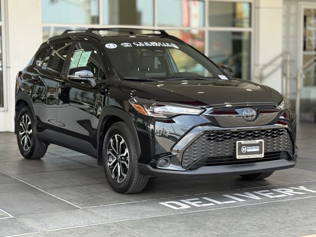 Certified. Clean CARFAX.**TOYOTA CERTIFIED PRE-OWNED VEHICLE**, ** PASSED FULL MULTI POINT INSPECTION, ** BLUETOOTH, ** APPLE CAR PLAY/ ANDROID AUTO, Toyota Safety Sense 3.0: Pre-Collision Sys w/Pedestrian Detection, Full-Speed Range Dynamic Radar Cruise Control, Lane Departure Alert w/Steering Assist, Automatic High Beams, Road Sign Assist, Lane Tracing Assist Star Safety System Connected Services Capable. 4G network dependent. See Toyota.com for details. Smart Key System w/ Push Button Start Blind Spot Monitor w/ Rear Cross-Traffic Alert, 2.0L I4 PDI Hybrid DOHC 16V LEV3-SULEV30 150hp, 4-Wheel Disc Brakes, 6 Speakers, ABS brakes, Air Conditioning, Alloy wheels, AM/FM radio: SiriusXM, Auto High-beam Headlights, Automatic temperature control, Brake assist, Bumpers: body-color, Delay-off headlights, Driver door bin, Driver vanity mirror, Dual front impact airbags, Dual front side impact airbags, Electronic Stability Control, Emergency communication system: Safety Connect (up to 10-year trial subscription), Exterior Parking Camera Rear, Fabric Seat Trim, Four wheel independent suspension, Front anti-roll bar, Front Bucket Seats, Front Center Armrest, Front reading lights, Fully automatic headlights, Heated door mirrors, Illuminated entry, Knee airbag, Leather steering wheel, Low tire pressure warning, Moonroof Package, Occupant sensing airbag, Outside temperature display, Overhead airbag, Panic alarm, Passenger door bin, Passenger vanity mirror, Power door mirrors, Power steering, Power windows, Radio data system, Radio: 8" Touch-Screen Display Audio, Rear anti-roll bar, Rear side impact airbag, Rear window defroster, Rear window wiper, Remote keyless entry, ROOF RACKS, Speed control, Split folding rear seat, Spoiler, Steering wheel mounted audio controls, Tachometer, TBD Axle Ratio, Telescoping steering wheel, Tilt & Slide Sunroof & Moonroof, Tilt steering wheel, Tonneau Cover & Try Trim, Traction control, Trip computer, Turn signal indicator mirrors, Variably intermittent wipers, Wheels: 17" Silver-Colored Alloy.Jet Black 2023 Toyota Corolla Cross Hybrid SE AWD eCVT 2.0L I4 PDI Hybrid DOHC 16V LEV3-SULEV30 150hpOdometer is 5392 miles below market average! 45/38 City/Highway MPGToyota Gold Certified Details: * Vehicle History * Warranty Deductible: $0 * Transferable Warranty * 160 Point Inspection * Powertrain Limited Warranty: 84 Month/100,000 Mile (whichever comes first) from TCUV purchase date * Limited Warranty: 12 Month/12,000 Mile Limited Comprehensive Warranty: 12 Month/12,000 Mile (whichever comes first) from certified purchase date * Roadside Assistance * Roadside Assistance for 7 Year / 100,000 Mile. Standard New-Car Financing Rates Available. Warranty honored at over 1,400 Toyota dealers in the continental U.S. & Canada. Trade-ins accepted. Trouble-free handling of your transaction, including DMV paperwork*Vehicle may have dealer added equipment not reflected in price.