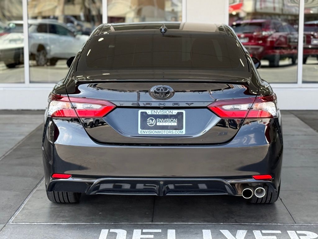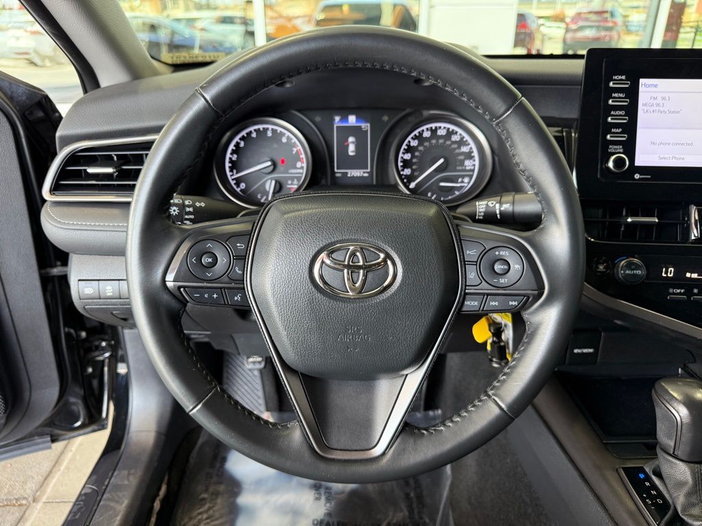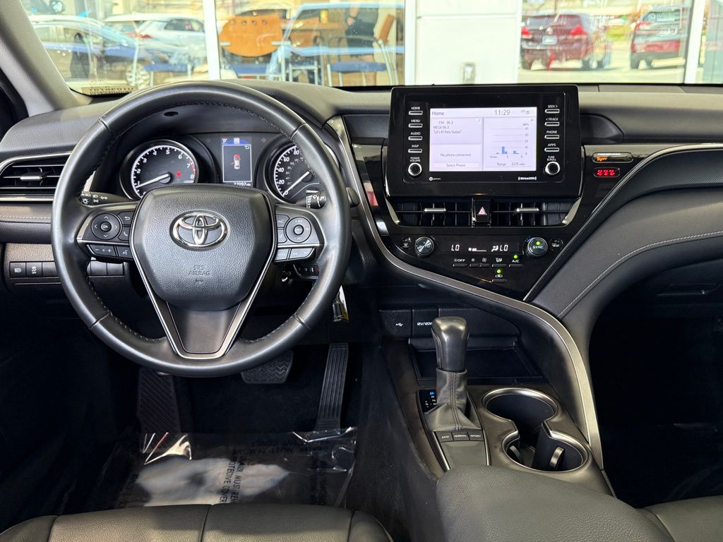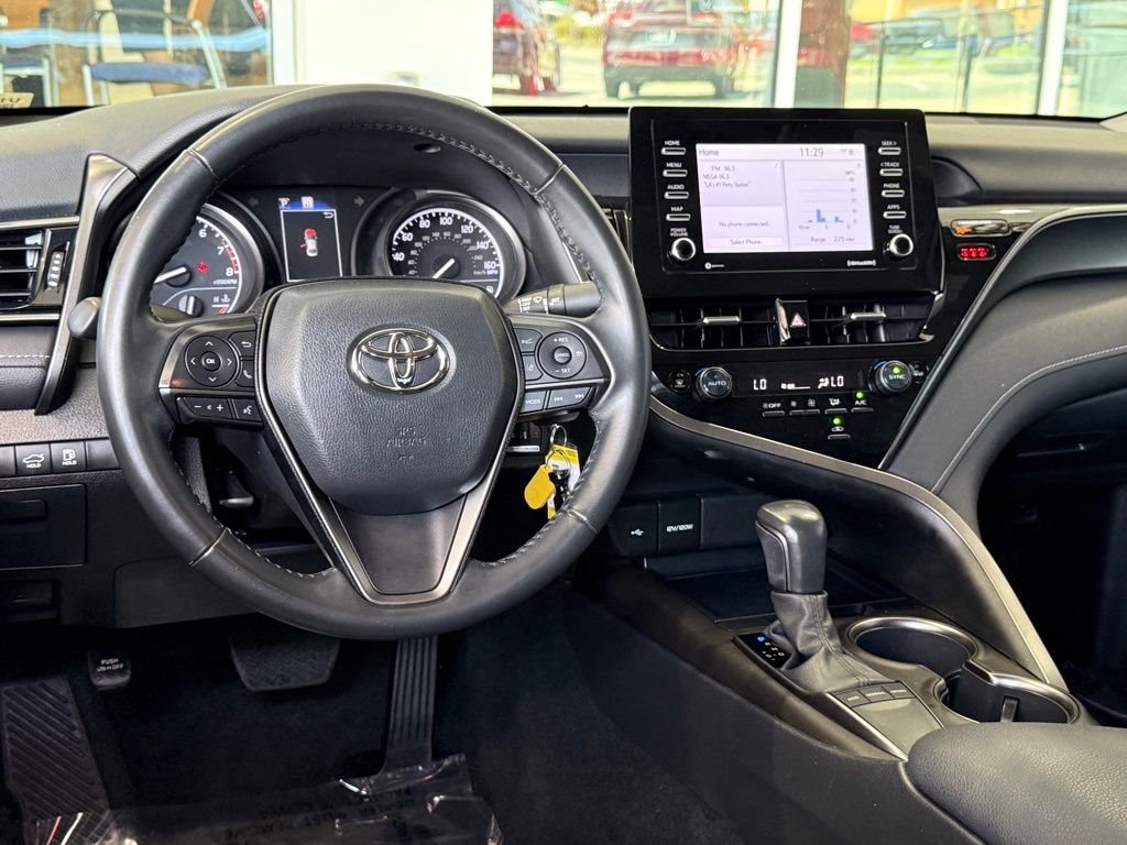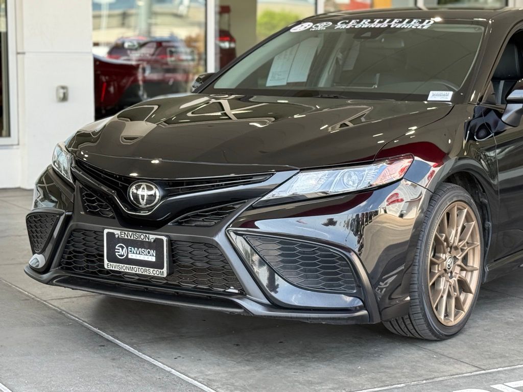 Certified. Clean CARFAX.**TOYOTA CERTIFIED PRE-OWNED VEHICLE**, ** PASSED FULL MULTI POINT INSPECTION, ** BLUETOOTH, ** APPLE CAR PLAY/ ANDROID AUTO, SAFETY & CONVENIENCE Toyota Safety Sense 2.5+: Pre-Collision Sys w/Pedestrian Detection, Dynamic Radar Cruise Control, Lane Departure Alert w/Steering Assist, Lane Tracing Assist, Automatic High Beams, Road Sign Assist Star Safety System Connected Services Capable. 4G Network Dependent., Black w/Sport SofTex Seat Trim w/Fabric Inserts, 4-Wheel Disc Brakes, 6 Speakers, ABS brakes, Air Conditioning, Alloy wheels, AM/FM radio: SiriusXM, Apple CarPlay/Android Auto, Auto High-beam Headlights, Automatic temperature control, Brake assist, Bumpers: body-color, Carpet/Trunk Mat Set (TMS), Delay-off headlights, Driver door bin, Driver vanity mirror, Dual front impact airbags, Dual front side impact airbags, Electronic Stability Control, Emergency communication system: Safety Connect (1-year trial), Exterior Parking Camera Rear, Four wheel independent suspension, Front anti-roll bar, Front Bucket Seats, Front Center Armrest, Front dual zone A/C, Front reading lights, Fully automatic headlights, Heated door mirrors, Illuminated entry, Knee airbag, Leather steering wheel, Low tire pressure warning, Nightshade Edition, Occupant sensing airbag, Outside temperature display, Overhead airbag, Overhead console, Panic alarm, Passenger door bin, Passenger vanity mirror, Power door mirrors, Power driver seat, Power steering, Power windows, Radio data system, Radio: Audio, Rear anti-roll bar, Rear seat center armrest, Rear side impact airbag, Rear window defroster, Remote keyless entry, Security system, Speed control, Speed-sensing steering, Split folding rear seat, Spoiler, Sport SofTex Seat Trim w/Fabric Inserts, Steering wheel mounted audio controls, Tachometer, Telescoping steering wheel, Tilt steering wheel, Traction control, Trip computer, Turn signal indicator mirrors, Variably intermittent wipers, Wheels: 8.5J x 19" Alloy.Midnight Black Metallic 2023 Toyota Camry SE Nightshade FWD 8-Speed Automatic 2.5L I4 DOHC 16V28/39 City/Highway MPGToyota Gold Certified Details: * Powertrain Limited Warranty: 84 Month/100,000 Mile (whichever comes first) from TCUV purchase date * Vehicle History * Roadside Assistance * Roadside Assistance for 7 Year / 100,000 Mile. Standard New-Car Financing Rates Available. Warranty honored at over 1,400 Toyota dealers in the continental U.S. & Canada. Trade-ins accepted. Trouble-free handling of your transaction, including DMV paperwork * Transferable Warranty * 160 Point Inspection * Limited Warranty: 12 Month/12,000 Mile Limited Comprehensive Warranty: 12 Month/12,000 Mile (whichever comes first) from certified purchase date * Warranty Deductible: $0*Vehicle may have dealer added equipment not reflected in price.