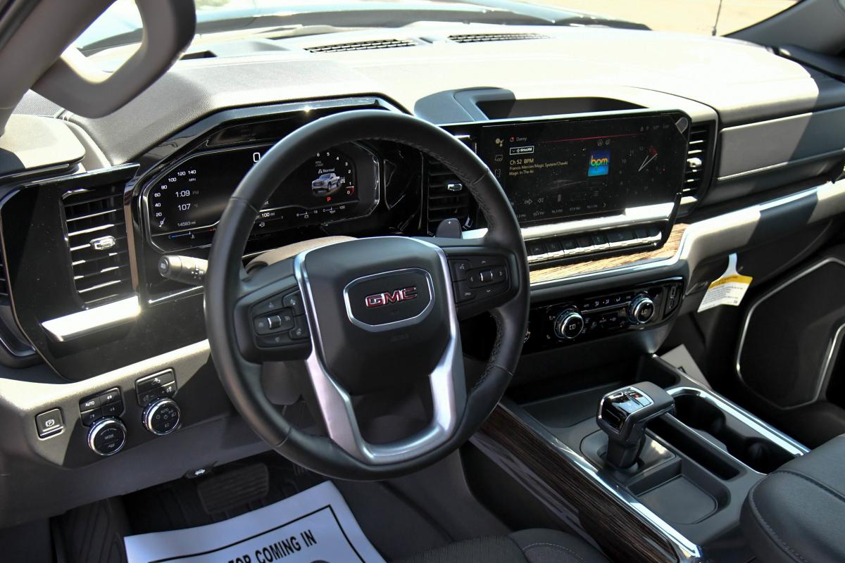 This GMC Sierra 1500 has a powerful Gas V8 5.3L/325 engine powering this Automatic transmission. X31 OFF-ROAD PACKAGE includes Off-Road suspension, (JHD) Hill Descent Control, (NZZ) skid plates, (K47) heavy-duty air filter and X31 hard badge Includes (B1J) rear wheelhouse liners, (QAE) 275/60R20SL all-terrain, blackwall tires and (NQH) 2-speed transfer case. Includes (N10) dual exhaust., X31 OFF-ROAD AND PROTECTION PACKAGE includes (X31) Off-Road Package, (CGN) spray-on bedliner and (RIA) All-weather floor liners, LPO, WIRELESS CHARGING.*This GMC Sierra 1500 Features the Following Options *USB PORTS, 2, CHARGE/DATA PORTS LOCATED INSIDE CENTER CONSOLE, TRANSMISSION, 10-SPEED AUTOMATIC WITH ELECTRONIC PRECISION SHIFT, ELECTRONICALLY CONTROLLED with overdrive, and tow/haul mode and steering column paddle shifters. Includes Cruise Grade Braking and Powertrain Grade Braking, TRANSFER CASE, TWO-SPEED, ELECTRONIC AUTOTRAC with push button control, TIRES, 275/60R20SL ALL-TERRAIN, BLACKWALL (Includes (QAQ) spare tire.), SUSPENSION, OFF-ROAD, STEERING COLUMN LOCK, ELECTRICAL (Beginning with start of production through July 31, 2023, vehicles will be forced to include (R7N) Not Equipped with Steering Column Lock, which removes Steering Column Lock. See dealer for details. Vehicles built on or after July 31, 2023 will include (N06) Steering Column Lock.), SKID PLATES, SEATS, FRONT BUCKET with center console (Includes (D07) center console and (K4C) Wireless charging., REAR AXLE, 3.23 RATIO, ONYX BLACK.