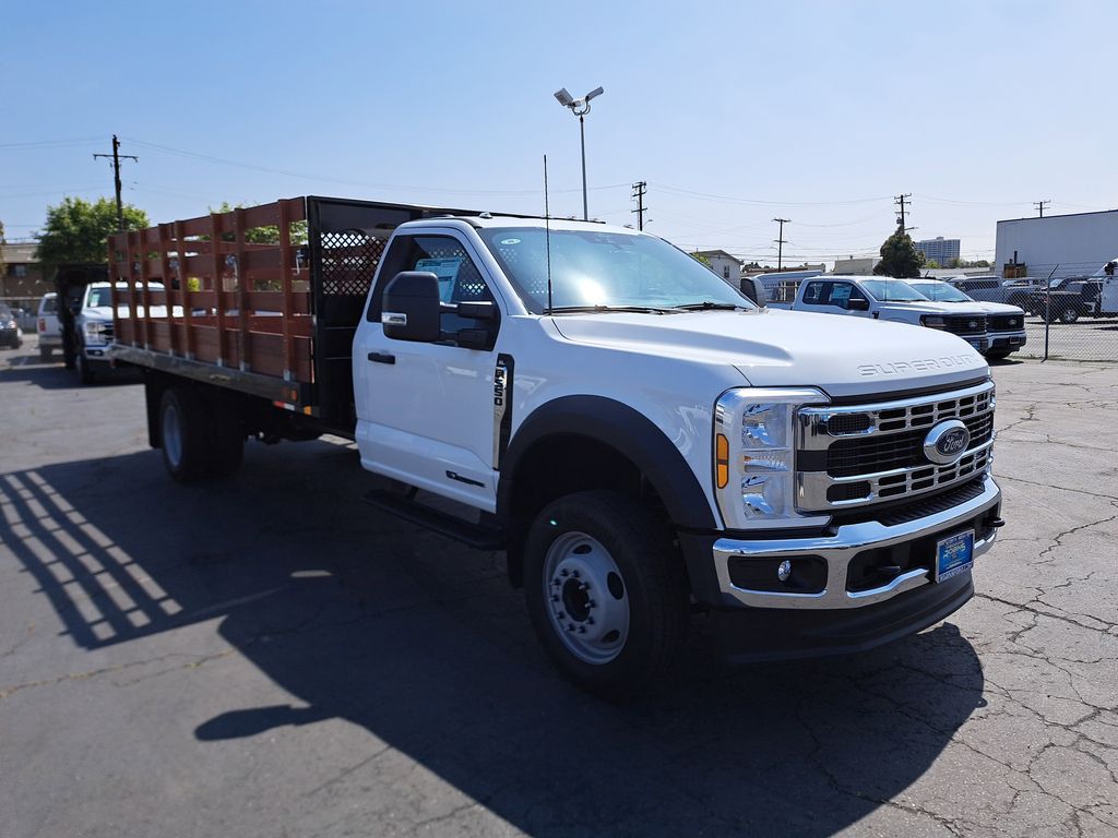 The 2025 Ford F-550 Diesel with a 16-foot So Cal Truck Body stake bed is a robust and versatile work truck designed for demanding commercial applications. Built on Ford's Super Duty chassis, it offers a Gross Vehicle Weight Rating (GVWR) of up to 19,500 lbs, providing ample capacity for heavy-duty tasks. The 16-foot stake bed body, manufactured by Southern California Truck Bodies, features a durable steel frame with hardwood flooring, ensuring longevity and reliability. Standard features include removable steel stake sides and rear gate for flexible loading and unloading options, ICC dock bumper for safety, and underbody toolboxes for secure storage of tools and equipment. This combination of the F-550 chassis and So Cal stake bed body makes it an ideal choice for contractors, landscapers, and other professionals requiring a dependable and customizable work vehicle.Delivering great deals and trusted service at Theodore Robins Ford—your trusted family-owned dealership since 1921!2025 Ford F-550SD XL Oxford White RWD Power Stroke 6.7L V8 DI 32V OHV Turbodiesel 10-Speed AutomaticPersonalized service, exceptional vehicles. That's the Theodore Robins Ford promise. Price includes dealer added accessories.