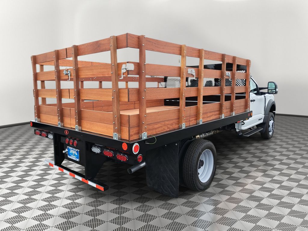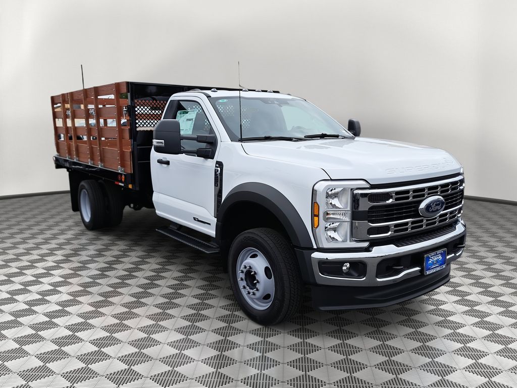 The 2025 Ford F-550 with a 12-foot So Cal Truck Body stakebed is a robust and versatile work truck designed to meet the demands of various industries. Built on Ford's Super Duty chassis, the F-550 offers a Gross Vehicle Weight Rating (GVWR) of up to 19,500 lbs, providing ample capacity for heavy-duty tasks. The 12-foot stakebed body, manufactured by Southern California Truck Bodies, features a durable steel frame with hardwood flooring, ensuring longevity and reliability. Standard features include rope hooks for secure cargo tie-downs, recessed LED lighting for enhanced visibility, and a laser-cut bulkhead for added strength. Optional upgrades such as toolboxes and tow packages are available to further customize the truck to specific needs. This combination of the F-550 chassis and So Cal stakebed body makes for an ideal solution for contractors, landscapers, and other professionals requiring a dependable and customizable work vehicle.Delivering great deals and trusted service at Theodore Robins Ford—your trusted family-owned dealership since 1921!2025 Ford F-550SD XL Oxford White RWD Power Stroke 6.7L V8 DI 32V OHV Turbodiesel 10-Speed AutomaticPersonalized service, exceptional vehicles. That's the Theodore Robins Ford promise. Price includes dealer added accessories.