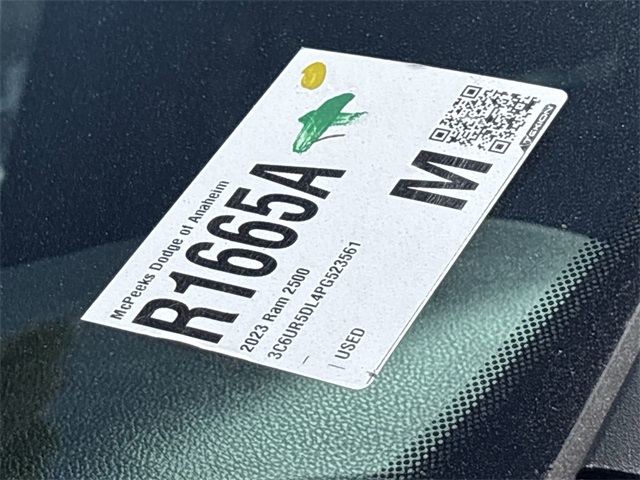 Certified. Clean CARFAX. CARFAX One-Owner. INTERIOR & EXTERIOR PROFESSIONALLY DETAILED FOR DELIVERY, MCPEEK CHRYSLER DODGE JEEP RAM FAMILY OWNED AND OPERATED SINCE 1961 !!!!!.Diamond Black Crystal Pearlcoat 2023 Ram 2500 Big Horn 4WD 6-Speed AutomaticFCA US LLC Certified Pre-Owned Details: * Vehicle History * Vehicles Up to 75,000 Miles and/or 5 Model Years. 24-Hour Towing & Roadside Assistance, Car Rental Allowance, CARFAX® Vehicle History ReportTM and an Introductory 3-month Subscription to SiriusXM® Satellite Radio & Certified Warranty Upgrades * Limited Warranty: 3 Month/3,000 Mile (whichever comes first) after new car warranty expires or from certified purchase date * Warranty Deductible: $100 * Powertrain Limited Warranty: 84 Month/100,000 Mile (whichever comes first) from original in-service date * Transferable Warranty * 125 Point Inspection * Roadside AssistanceReceive Free lube and oil filter changes for up to 45,000 miles for 3 years!!! McPeek's Dodge of Anahiem 1221 S. Auto Center Drive Anahiem, CA 92806 714-262-4902.