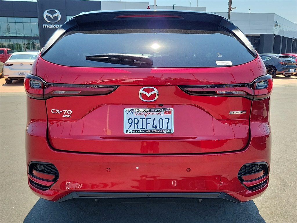 **All of our pre-owned vehicles are priced regularly using the most advanced REAL-TIME MARKET PRICING TECHNOLOGY available to ensure the price you’re offered is the best possible value. Please be mindful, our vehicles are VALUE-PRICED and tend to sell very quickly. If you see something you love, don’t wait, since it’s possible that many other potential customers share your enthusiasm** We offer this Mazda CX-70 with the following added value options: Courtesy Loaner Vehicle, CX-70 3.3 Turbo S Premium Plus, AWD, Soul Red Crystal Metallic. Priced below KBB Fair Purchase Price!CARFAX One-Owner. Clean CARFAX. Certified.Odometer is 1972 miles below market average! 23/28 City/Highway MPGMazda Certified Pre-Owned Details: * Powertrain Limited Warranty: 84 Month/100,000 Mile (whichever comes first) from original in-service date * Transferable Warranty * Includes Autocheck Vehicle History Report with 3 Year Buyback Protection. 3 month SiriusXM trial subscription. * Vehicle History * 160 Point Inspection * Warranty Deductible: $0 * Limited Warranty: 12 Month/12,000 Mile (whichever comes first) after new car warranty expires or from certified purchase date * Roadside AssistanceSubject to prior sale. Although every reasonable effort has been made to ensure the accuracy of the information contained on this site, absolute accuracy cannot be guaranteed. Not responsible for typographical errors. Prices do not include government fees, taxes, title, finance charges, document fee, or emission testing charge. NOTICE: All our vehicles have an anti-theft Rockledge Alarm system installed. This advertised price excludes the purchase price of the anti-theft system, which can be purchased for an additional cost or deactivated from the vehicle at the time of sale.
