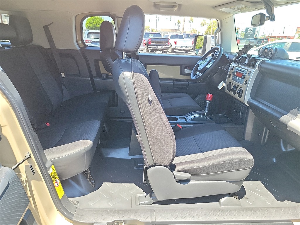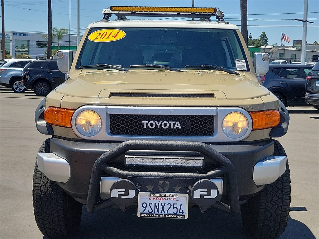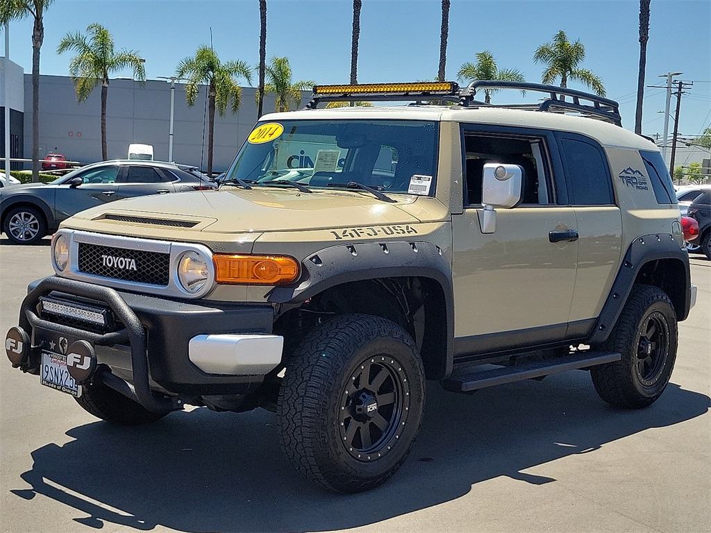 **All of our pre-owned vehicles are priced regularly using the most advanced REAL-TIME MARKET PRICING TECHNOLOGY available to ensure the price you’re offered is the best possible value. Please be mindful, our vehicles are VALUE-PRICED and tend to sell very quickly. If you see something you love, don’t wait, since it’s possible that many other potential customers share your enthusiasm** We offer this Toyota FJ Cruiser with the following added value options: 4.0L V6 DOHC VVT-i 24V, Quicksand, Convenience Package.Clean CARFAX.Awards: * JD Power Vehicle Dependability Study * JD Power Vehicle Dependability Study (VDS) * 2014 KBB.com Best Resale Value AwardsReviews: * For a fairly hard-core weekend off-road warrior, the FJ makes an entirely reasonable daily driver, and you really can live with it day-in, day-out. Few others will match that blend as well. Source: KBB.com * Unique design inside and out; high level of off-road capability; comfortable seats; simple controls. Source: EdmundsSubject to prior sale. Although every reasonable effort has been made to ensure the accuracy of the information contained on this site, absolute accuracy cannot be guaranteed. Not responsible for typographical errors. Prices do not include government fees, taxes, title, finance charges, document fee, or emission testing charge. NOTICE: All our vehicles have an anti-theft Rockledge Alarm system installed. This advertised price excludes the purchase price of the anti-theft system, which can be purchased for an additional cost or deactivated from the vehicle at the time of sale.