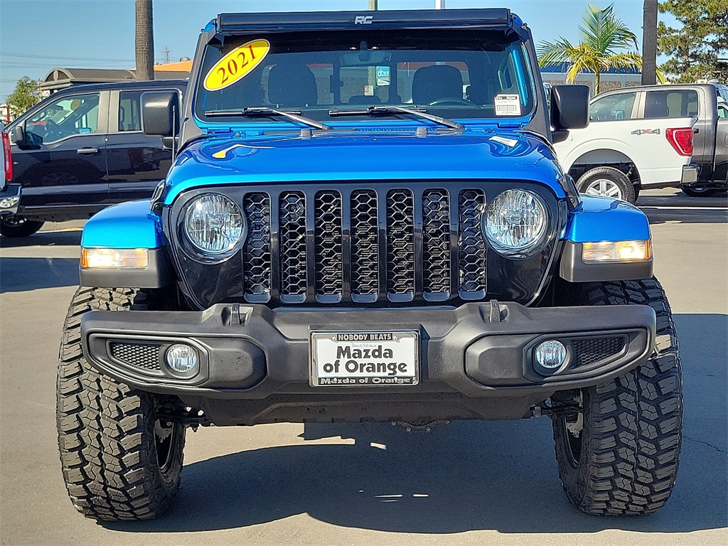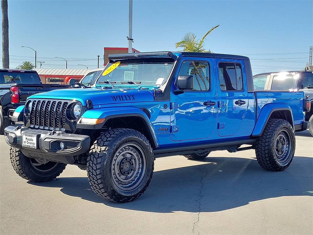 **All of our pre-owned vehicles are priced regularly using the most advanced REAL-TIME MARKET PRICING TECHNOLOGY available to ensure the price you’re offered is the best possible value. Please be mindful, our vehicles are VALUE-PRICED and tend to sell very quickly. If you see something you love, don’t wait, since it’s possible that many other potential customers share your enthusiasm** We offer this Jeep Gladiator with the following added value options: LIFTED, 50 " LIGHT BAR- BRAND NEW, NEW BLACK 20" RHINO WHEELS, NEW 35" OFF ROAD TIRES, PRIOR RENTAL VEHICLE, Gladiator Willys, 3.6L V6 24V VVT, 4WD, Hydro Blue Pearlcoat, Black Cloth, 1-Year SiriusXM Guardian Trial, 115V Auxiliary Power Outlet, 400W Inverter, 5-Year SiriusXM Traffic Service, 5-Year SiriusXM Travel Link Service, 8.4" Radio & Premium Audio Group, 8.4" Touchscreen Display, Air Conditioning w/Auto Temperature Control, Alpine Premium Audio System, Apple CarPlay, Auto-Dimming Rear-View Mirror, Console Bin Task Light, Convenience Group, Emergency/Assistance Call, For Details, Visit DriveUconnect.com, Google Android Auto, GPS Navigation, HD Radio, Integrated Center Stack Radio, Media Hub w/2 Charge Only USBs, Off-Road Info Pages, Radio: Uconnect 4C Nav w/8.4" Display, SiriusXM Satellite Radio, SiriusXM Traffic Plus, SiriusXM Travel Link, Universal Garage Door Opener, USB Host Flip. Priced below KBB Fair Purchase Price!CARFAX One-Owner. Clean CARFAX.Subject to prior sale. Although every reasonable effort has been made to ensure the accuracy of the information contained on this site, absolute accuracy cannot be guaranteed. Not responsible for typographical errors. Prices do not include government fees, taxes, title, finance charges, document fee, or emission testing charge. NOTICE: All our vehicles have an anti-theft Rockledge Alarm system installed. This advertised price excludes the purchase price of the anti-theft system, which can be purchased for an additional cost or deactivated from the vehicle at the time of sale.