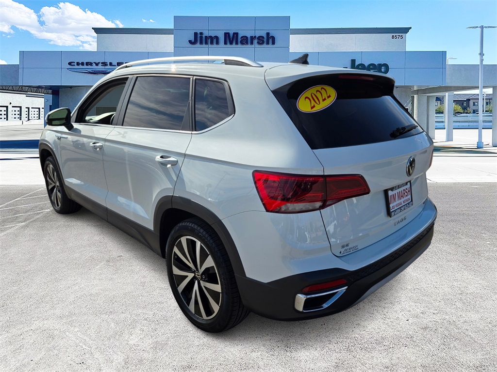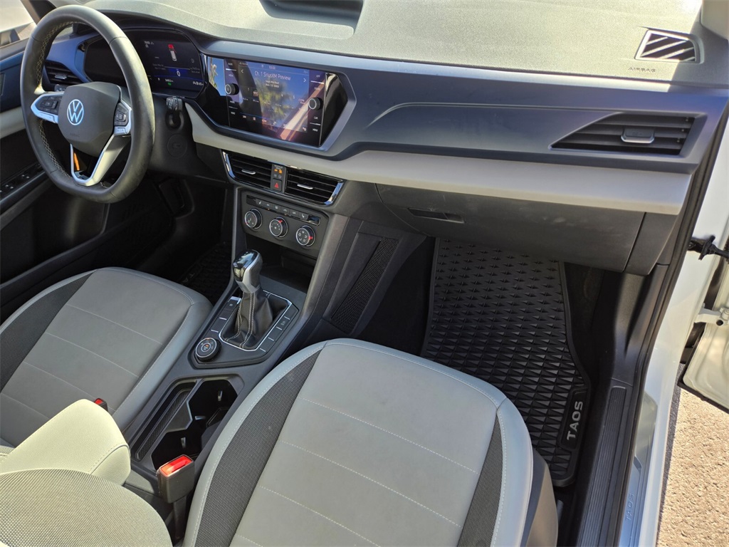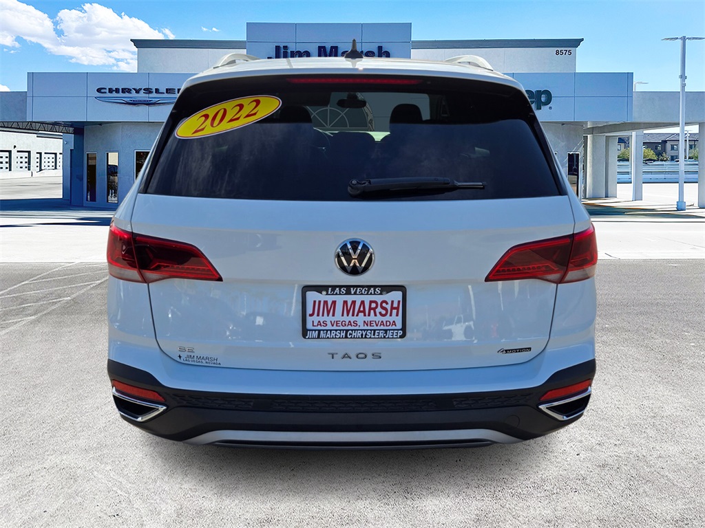 2022 Volkswagen Taos 1.5T SE AWD 7-Speed DSG Automatic with Tiptronic 1.5L I4 Turbocharged DOHC 16V LEV3-SULEV30 158hpOdometer is 10790 miles below market average!Call 844-538-1681 today to schedule your test drive! *Market Value: It does not include any taxes, fees or other charges. Due to 3rd party feed, the sales price and MSRP may differ, please contact dealer for details. * Pricing provided may vary significantly between website and dealer as a result of supply chain constraints. Pricing shown is non-binding and does not constitute an offer. Contact your dealer for updated vehicle pricing. * The estimated selling price that appears after calculating dealer offers is for informational purposes, only. Dealer pricing plus reconditioning fees on all preowned vehicles. You may not qualify for the offers, incentives, discounts, or financing. Offers, incentives, discounts, or financing are subject to expiration and other restrictions. See dealer for qualifications and complete details. * Images, prices, and options shown, including vehicle color, trim, options, pricing and other specifications are subject to availability, incentive offerings, current pricing and credit worthiness. * In transit means that vehicles have been built, but have not yet arrived at your dealer. Images shown may not necessarily represent identical vehicles in transit to your dealership. See your dealer for actual price, payments and complete details. Discounts and Rebates only apply to Nevada residents.