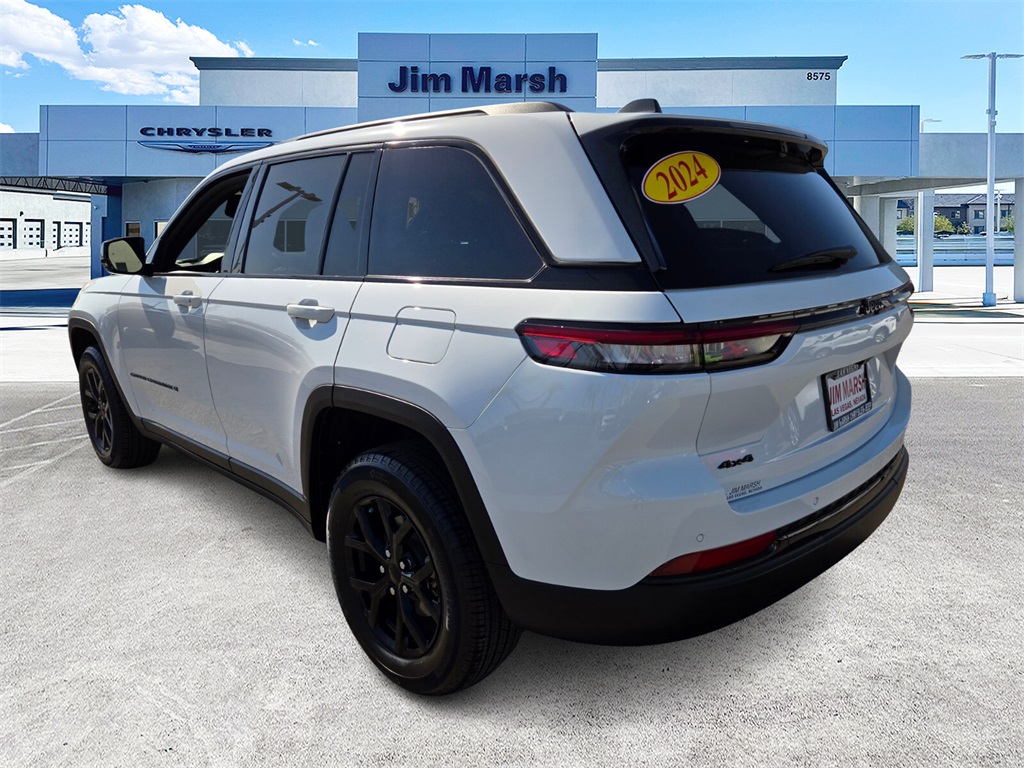 Bright White Clearcoat 2024 Jeep Grand Cherokee Altitude 4WD 8-Speed Automatic 3.6L V6 24V VVT 4WD.Odometer is 1194 miles below market average!Call 844-538-1681 today to schedule your test drive! *Market Value: It does not include any taxes, fees or other charges. Due to 3rd party feed, the sales price and MSRP may differ, please contact dealer for details. * Pricing provided may vary significantly between website and dealer as a result of supply chain constraints. Pricing shown is non-binding and does not constitute an offer. Contact your dealer for updated vehicle pricing. * The estimated selling price that appears after calculating dealer offers is for informational purposes, only. Dealer pricing plus reconditioning fees on all preowned vehicles. You may not qualify for the offers, incentives, discounts, or financing. Offers, incentives, discounts, or financing are subject to expiration and other restrictions. See dealer for qualifications and complete details. * Images, prices, and options shown, including vehicle color, trim, options, pricing and other specifications are subject to availability, incentive offerings, current pricing and credit worthiness. * In transit means that vehicles have been built, but have not yet arrived at your dealer. Images shown may not necessarily represent identical vehicles in transit to your dealership. See your dealer for actual price, payments and complete details. Discounts and Rebates only apply to Nevada residents.
