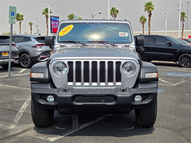 Priced below KBB Fair Purchase Price!Billet Silver Metallic Clearcoat 2021 Jeep Wrangler Unlimited Sport 4WD 8-Speed Automatic 3.6L V6 24V VVTIf you don't drive here, you can't save here!Price may not include recon fee. Quick Order Package 25B Sport, 3.45 Rear Axle Ratio, 4-Wheel Disc Brakes, 8 Speakers, ABS brakes, Air Conditioning, AM/FM radio, Aux Battery, Black 3-Piece Hard Top, Brake assist, Cloth Low-Back Bucket Seats, Compass, Deep Tint Sunscreen Windows, Delay-off headlights, Driver door bin, Driver vanity mirror, Dual front impact airbags, Dual front side impact airbags, Electronic Stability Control, For More Info, Call 800-643-2112, Freedom Panel Storage Bag, Front anti-roll bar, Front Bucket Seats, Front Center Armrest w/Storage, Front fog lights, Front reading lights, Integrated roll-over protection, Low tire pressure warning, MOPAR All-Weather Floor Mats (DISC), No Soft Top, Non-Lock Fuel Cap w/o Discriminator, Normal Duty Suspension, Occupant sensing airbag, Outside temperature display, ParkView Rear Back-Up Camera, Passenger door bin, Passenger vanity mirror, Power steering, Radio data system, Radio: Uconnect 3 w/5" Display, Rear anti-roll bar, Rear reading lights, Rear Window Defroster, Rear Window Wiper/Washer, SiriusXM Radio Service, SiriusXM Satellite Radio, Speed control, Split folding rear seat, Steering wheel mounted audio controls, Stop-Start Dual Battery System, Tachometer, Telescoping steering wheel, Tilt steering wheel, Traction control, Trip computer, Variably intermittent wipers, and Wheels: 17" x 7.5" Black Steel Styled.